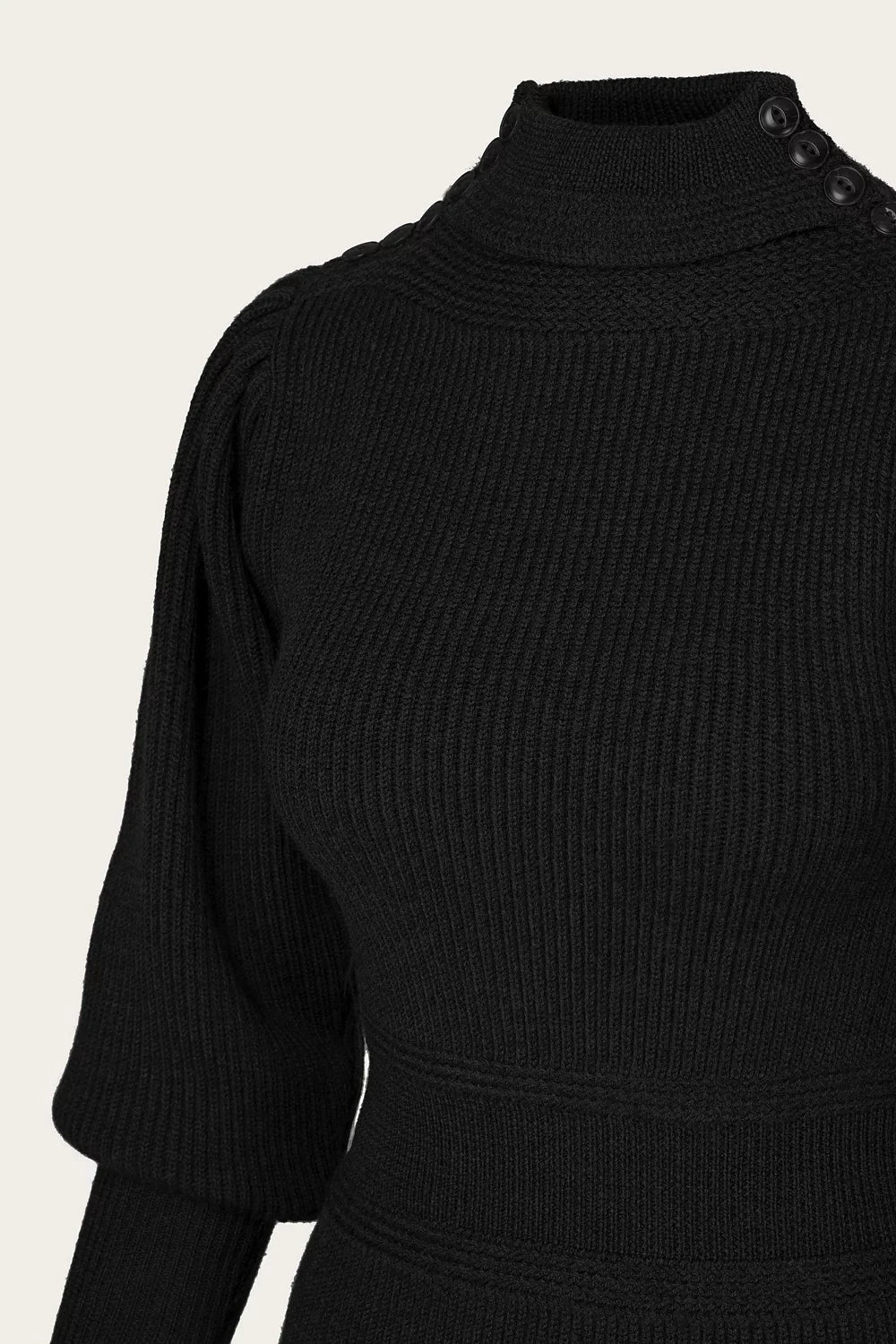 Denna klassiker i svart merinoull är lika fin till vintageinspirerade jeans, kjolar eller ett par Billie-byxor.
