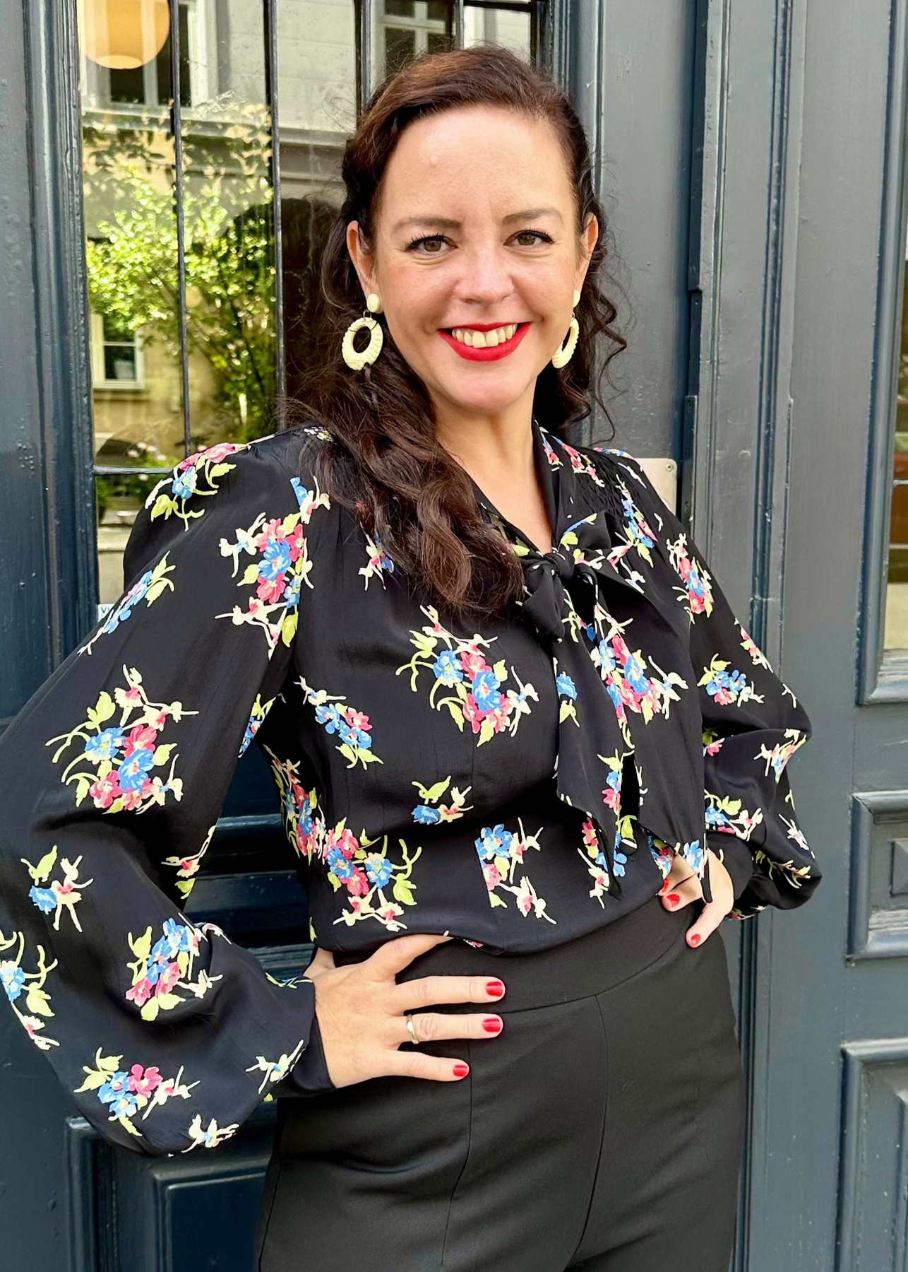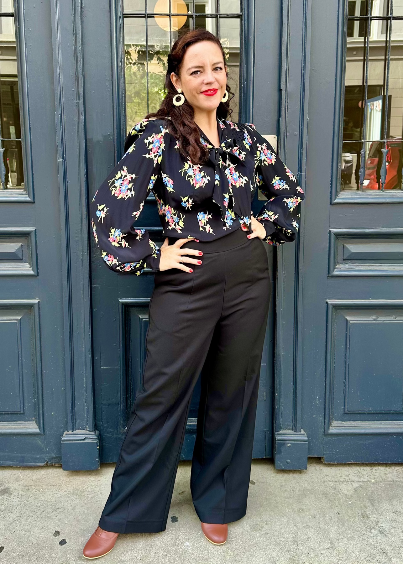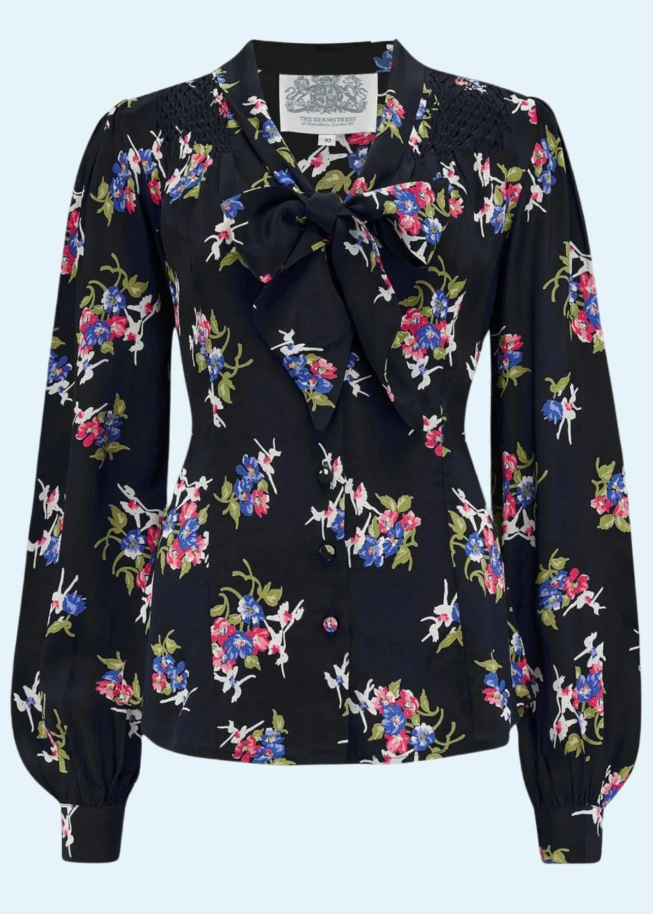 Härlig skjortblus i svart med blommigt motiv från The Seamstress of Bloomsbury.