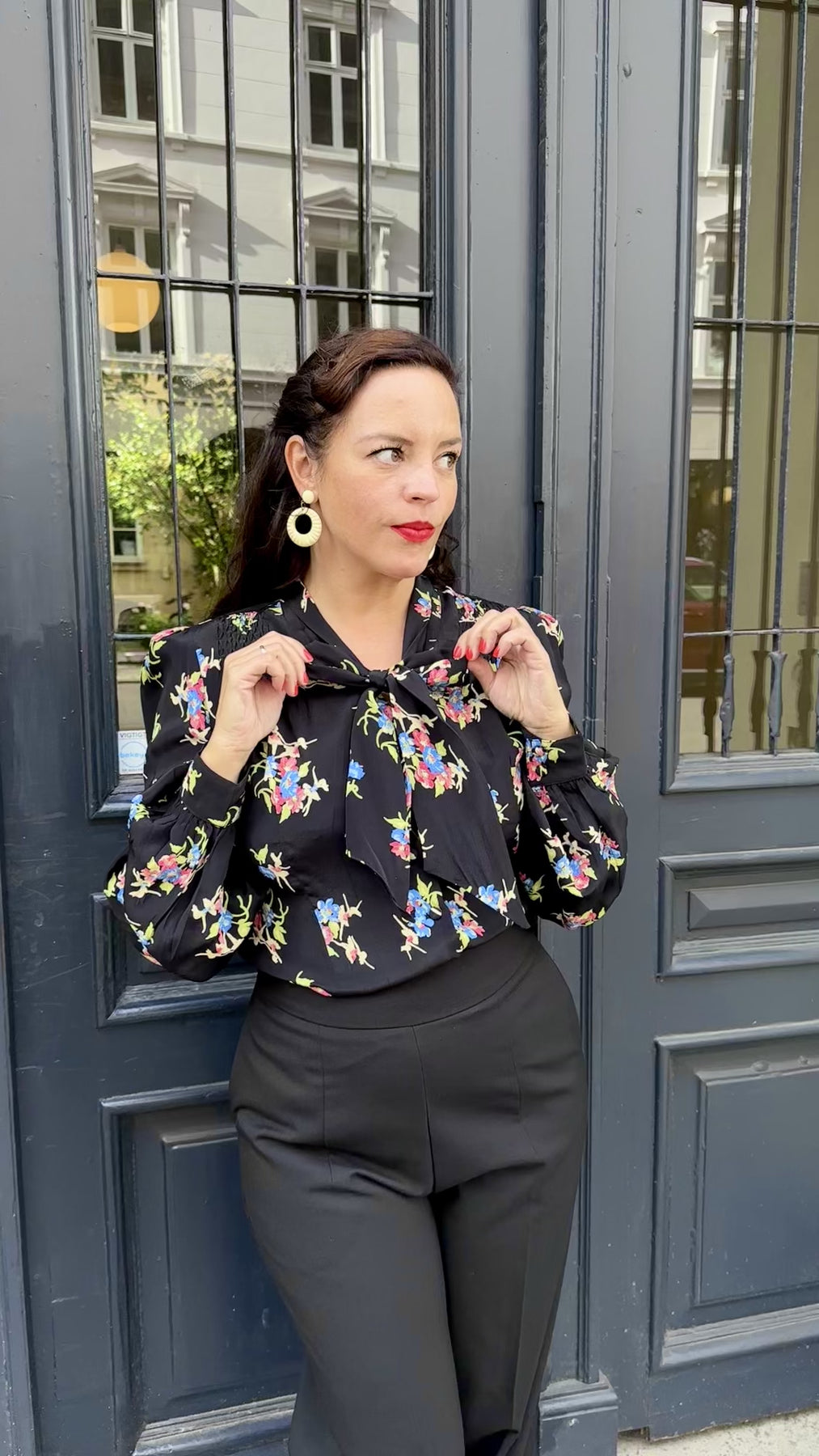 Eva - Langærmet skjorte i sort floral dancer langærmet skjorte Seamstress Of Bloomsbury