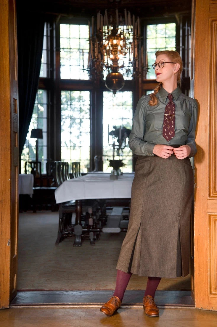 De lange ærmer har let fylde, og lukkes med en bred manchet. Skjorten er i 100% bomuld i en flot støvet 'hunter green', som passer perfekt til din vintage garderobe og kan styles til at passe til alle årets farver og nuancer.