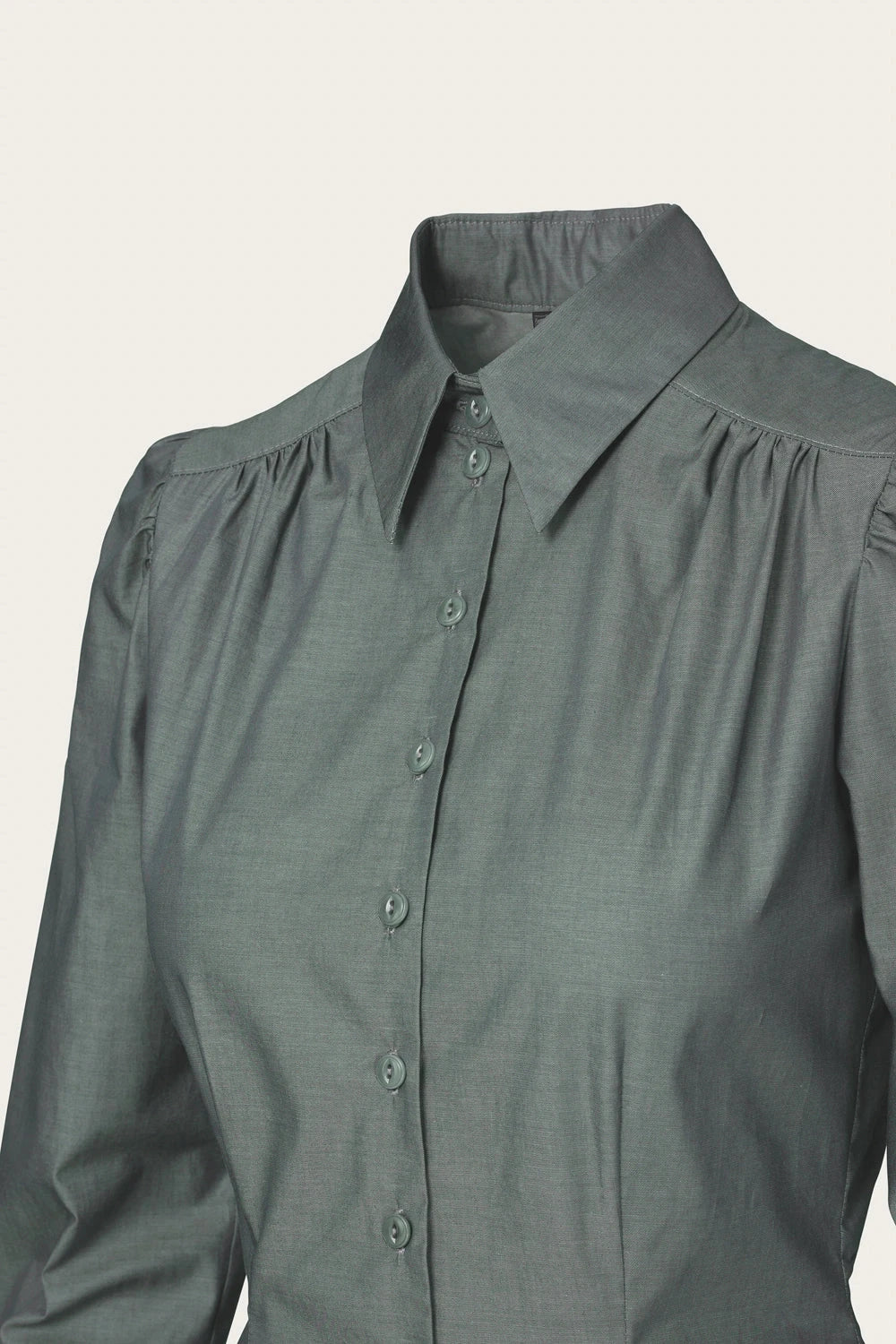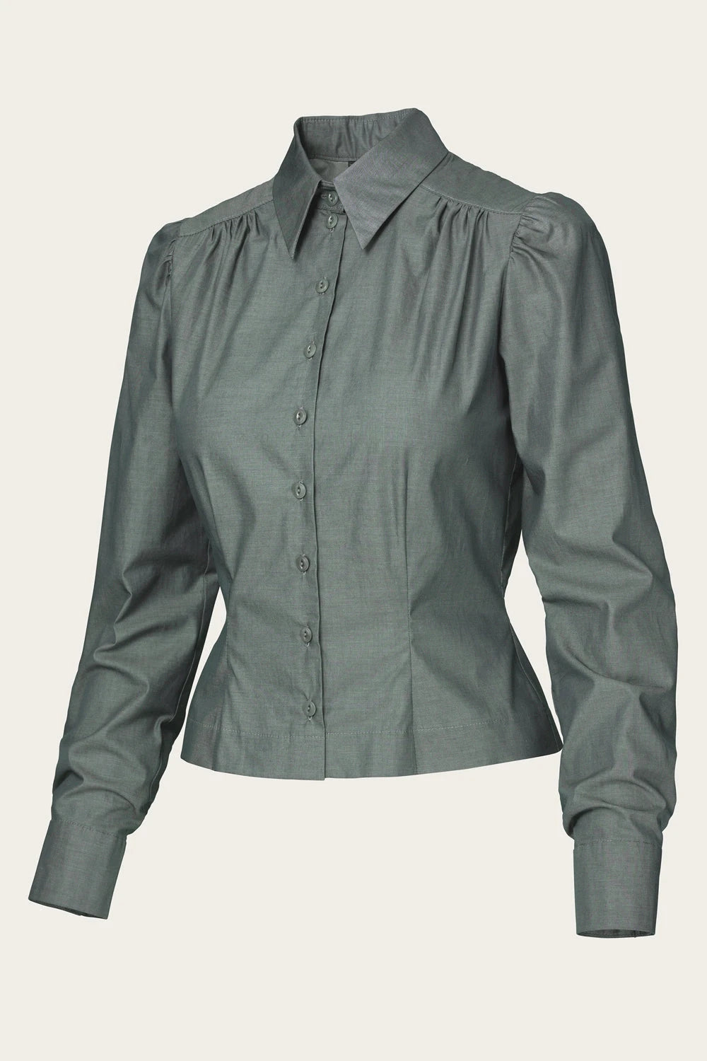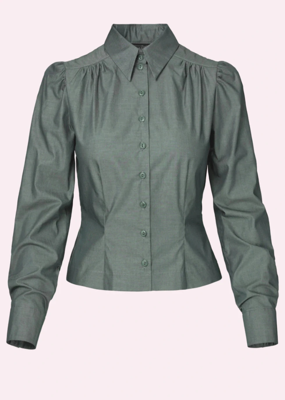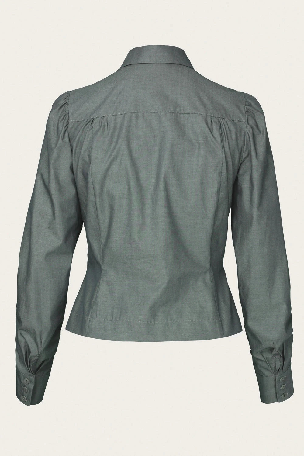 Klassisk vintage stils skjorte med lange ærmer i smuk støvet grøn fra Emmy Design.