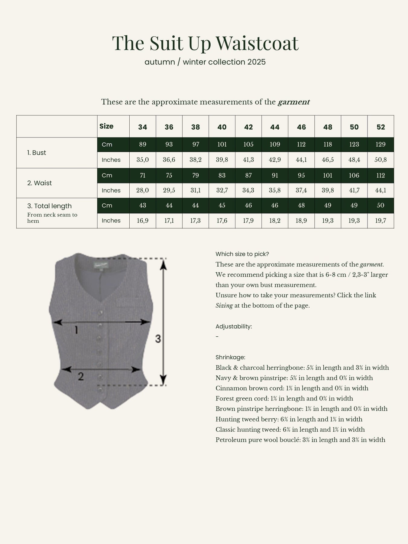 Vi elsker en god waistcoat, og denne gang har vi lavet en mere enkel udgave med en enkelt knaprække, som passer perfekt til sæsonens smukke stoffer.