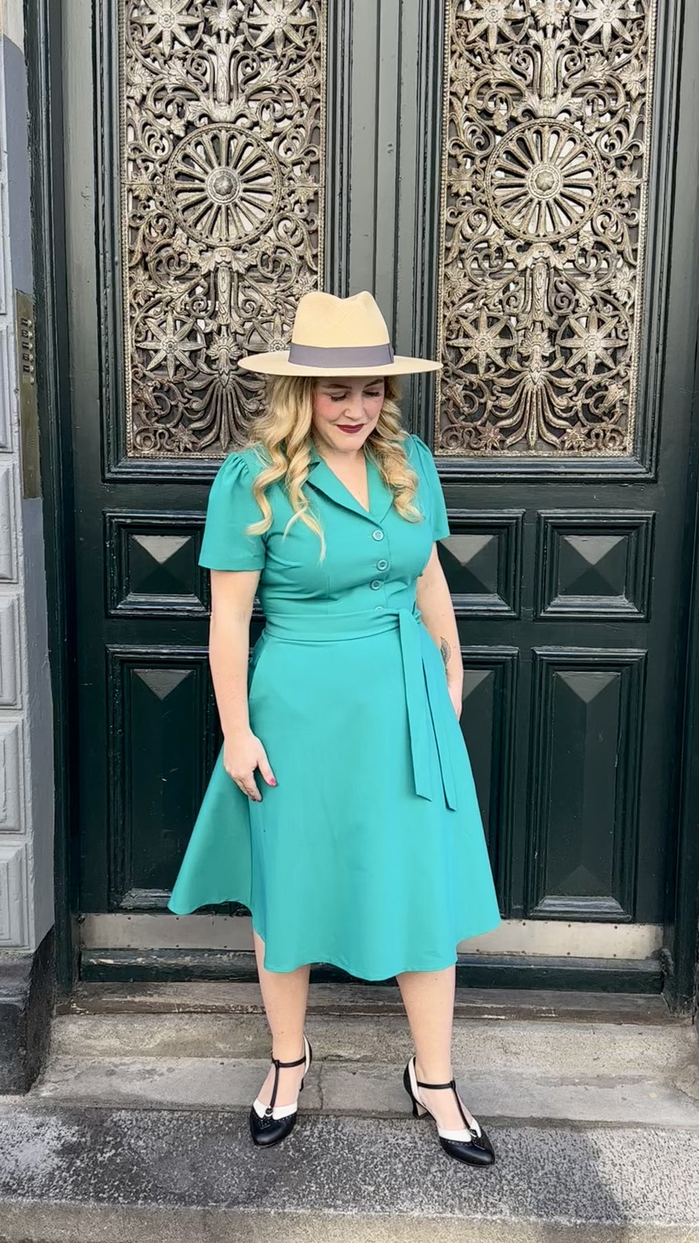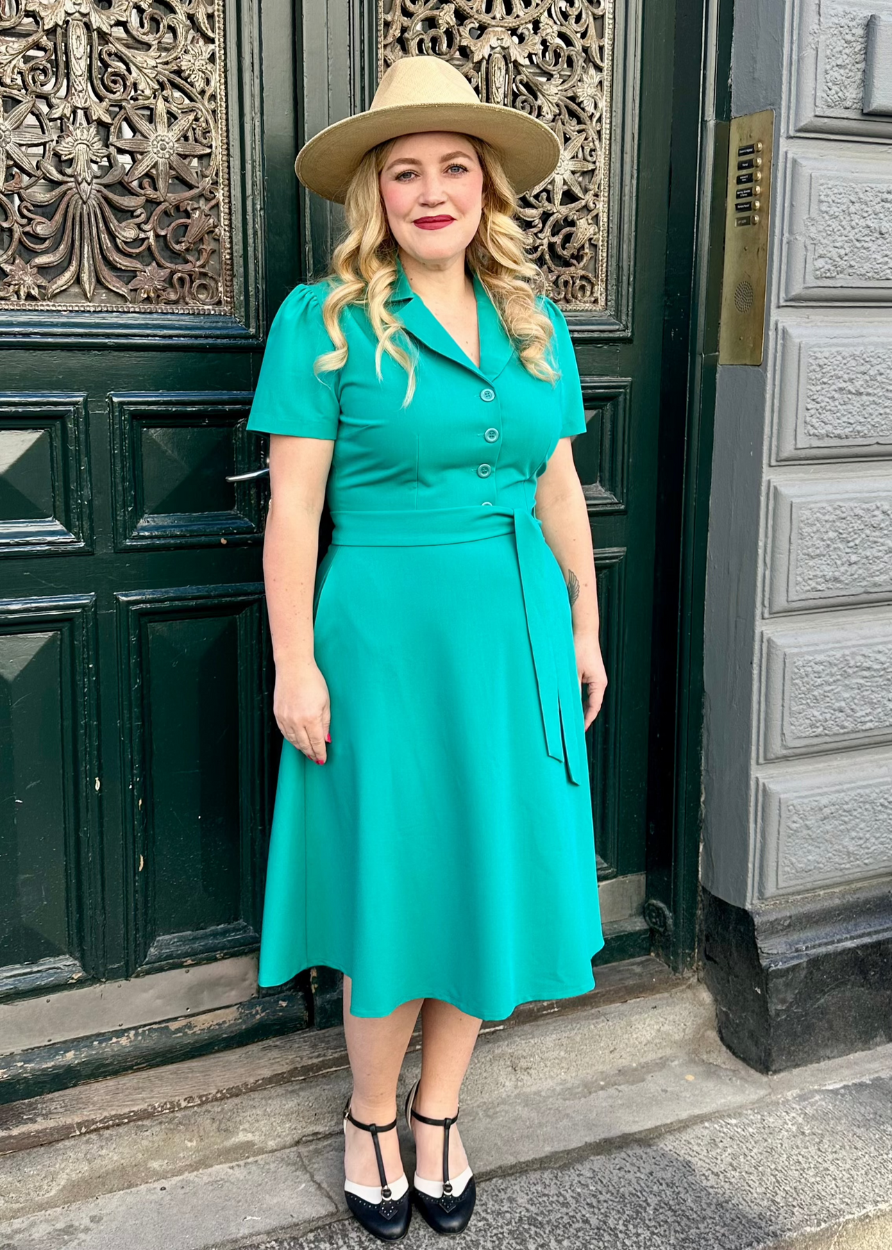 Skjortklänning i vintagestil i en fantastisk aquagrön färg från vårt eget varumärke Daisy Dapper.