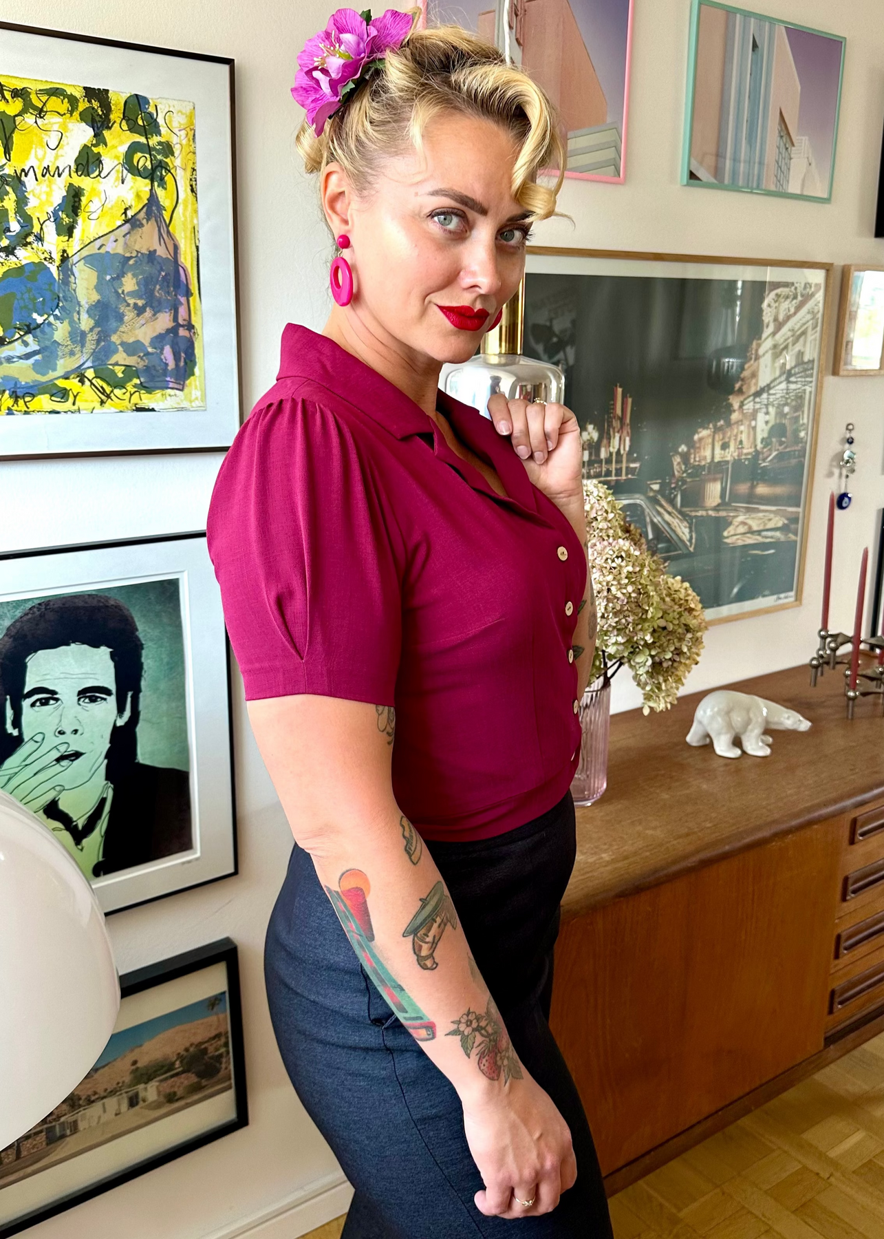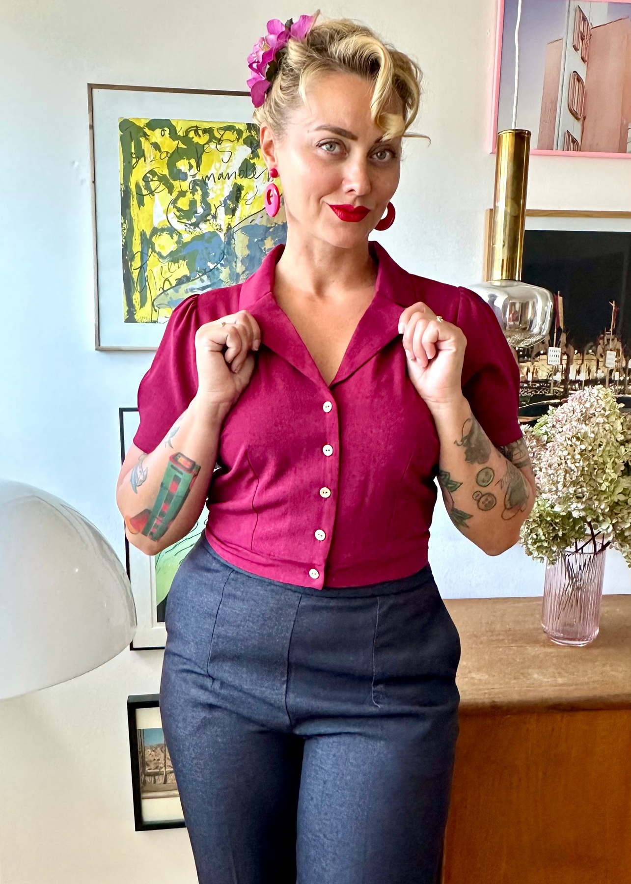 Vackra och smickrande byxor i vintagestil i lätt och skön viskosstretch!