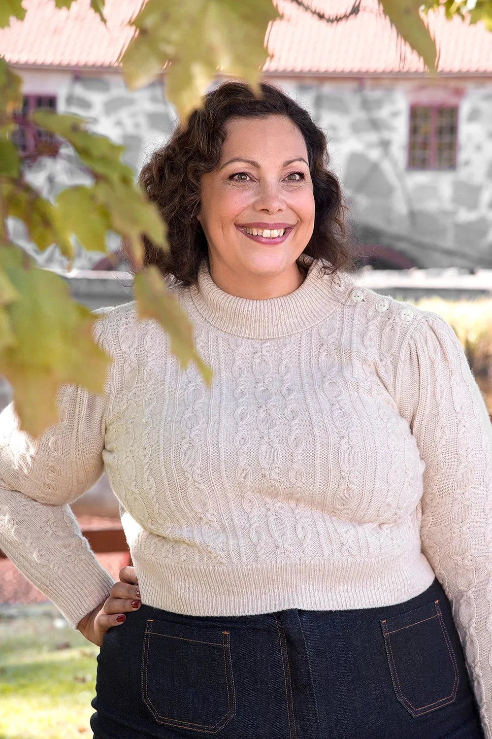 Det fina mönstret med flätor är inspirerat både av Emmys populära cardigan och av traditionella skandinaviska stickade tröjor.