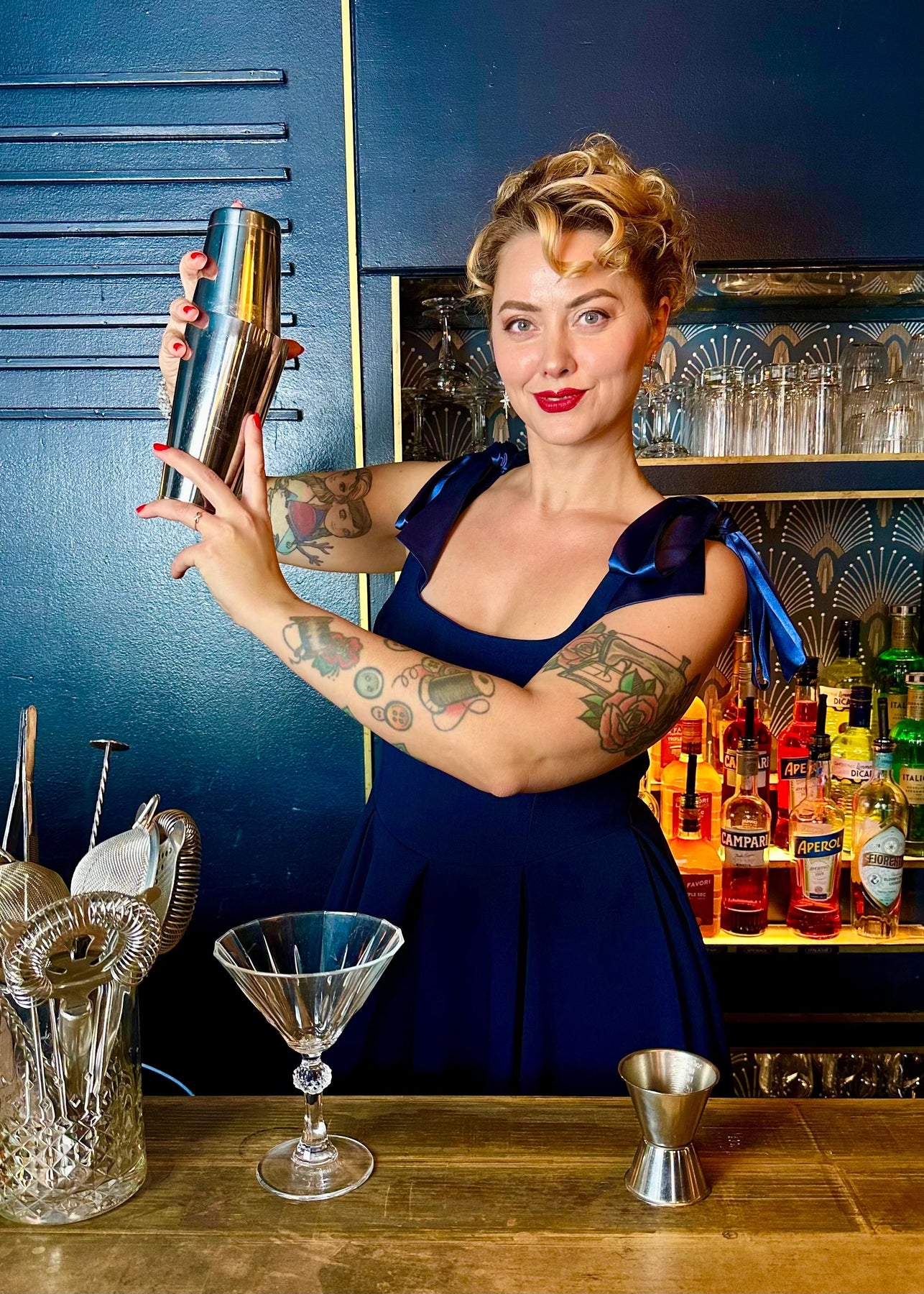 Den gröna färgen är lätt att styla — kombinera med guldaccessoarer, klackar eller en liten kofta för ett tidlöst vintageuttryck. Ta bort satinslöjorna för en renare look eller bär klänningen över en blus för en modern retrostil.