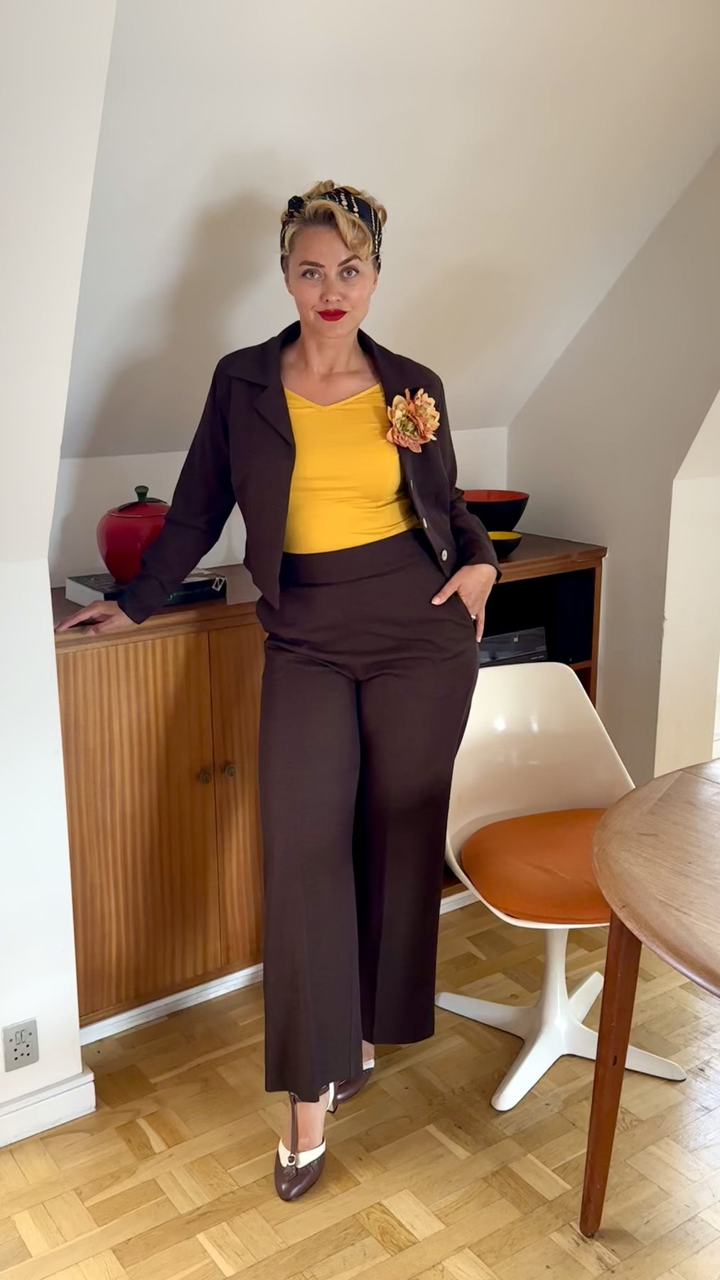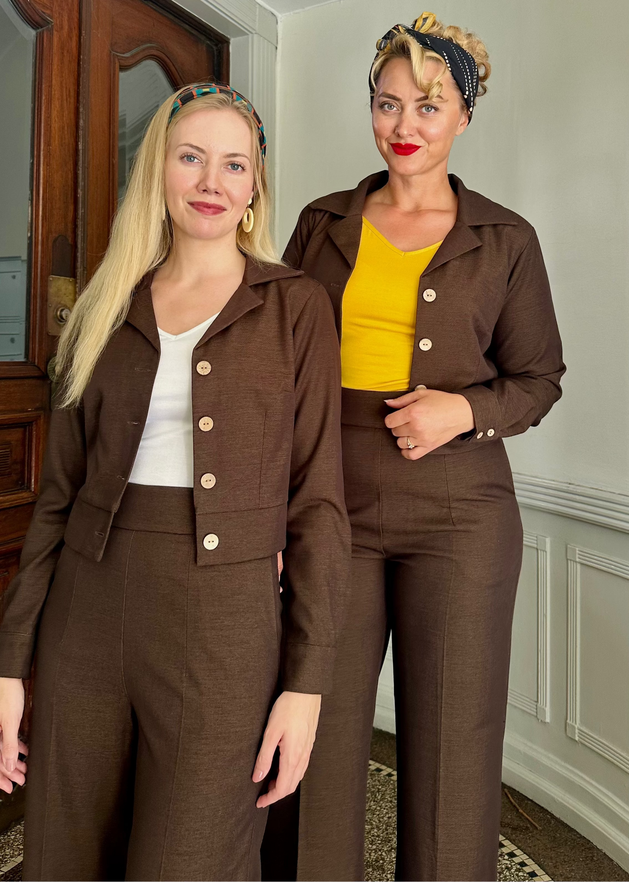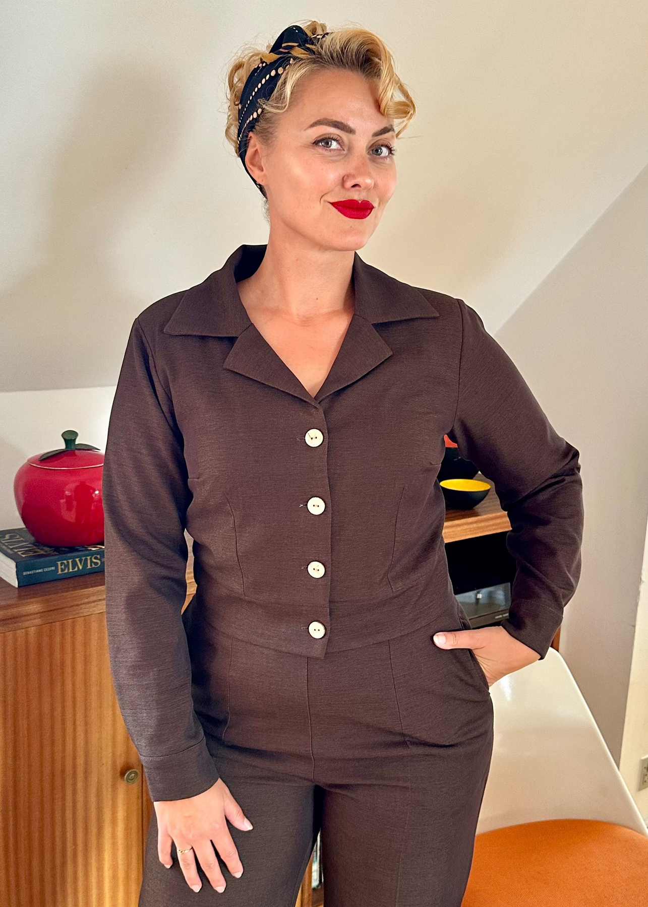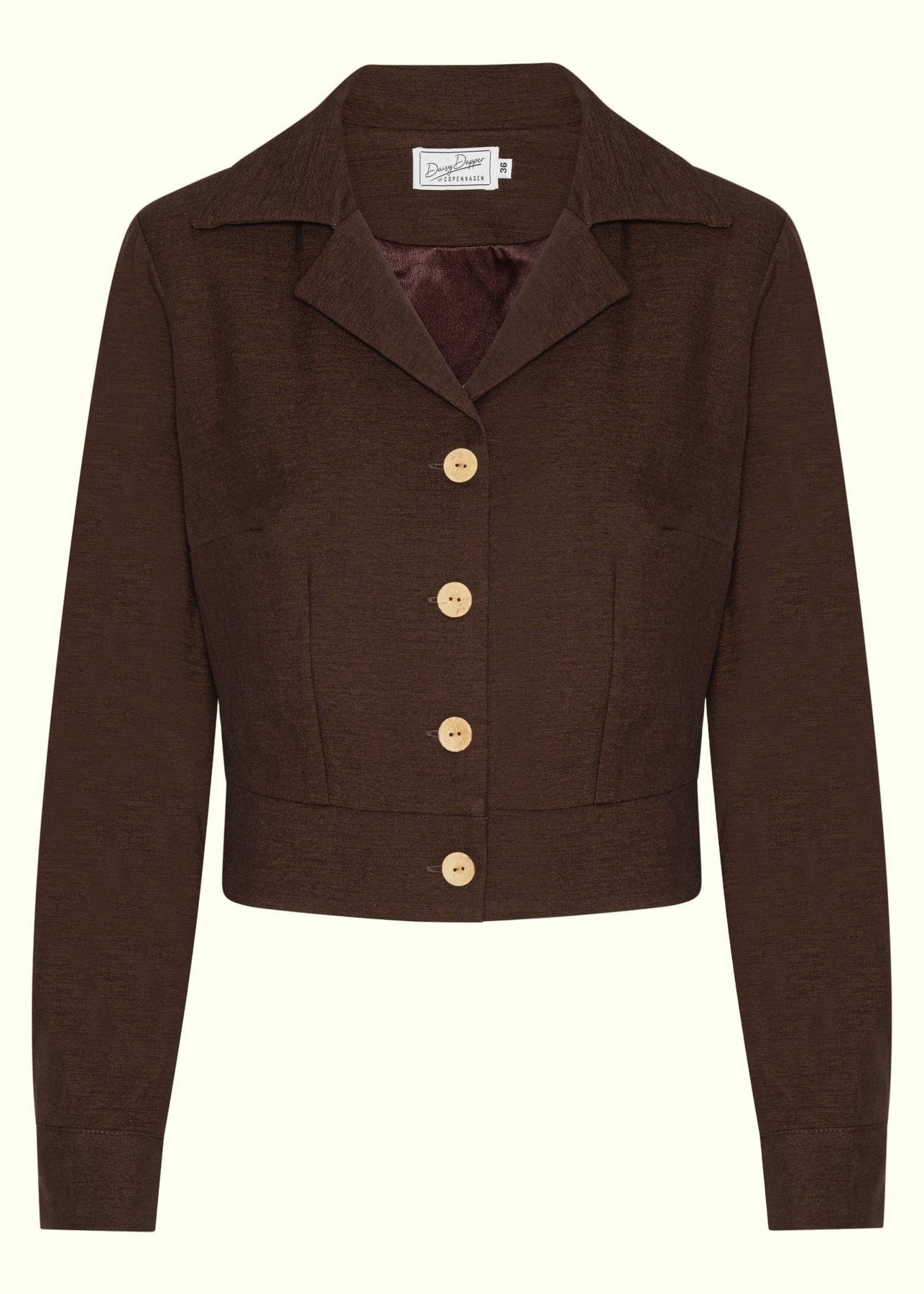Lätt 1940-talsinspirerad jacka med långa ärmar i en härlig brun från vårt eget märke Daisy Dapper.