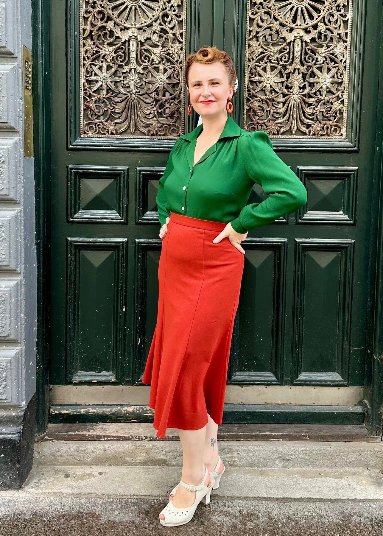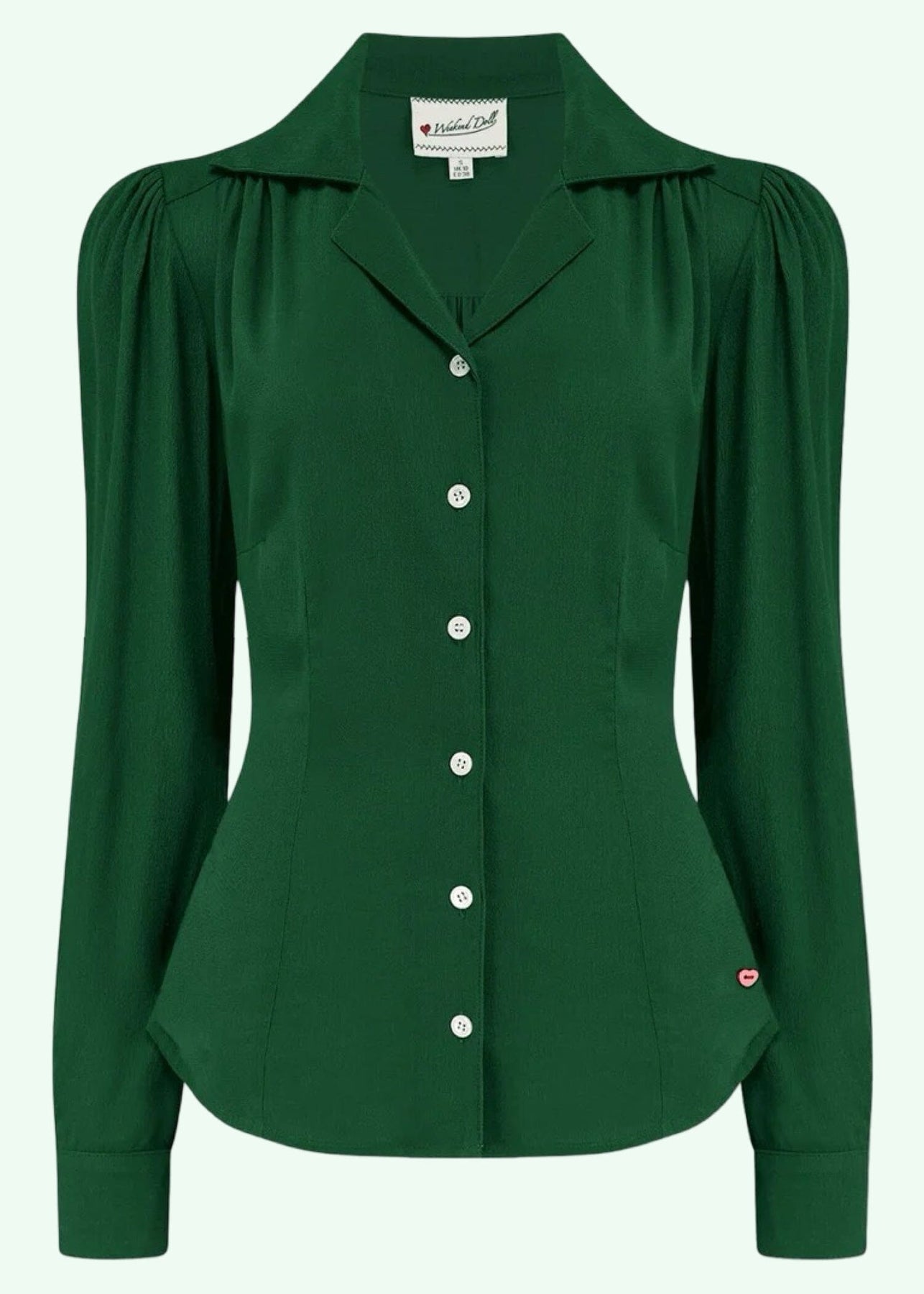 De långa ärmarna är puffade vid axlarna och är smalare än de typiska "biskopsärmarna", utan att vara för moderna. Manschetterna har en fin söm som ger ärmarna extra form och små knappar ger den rätta skjortlooken.