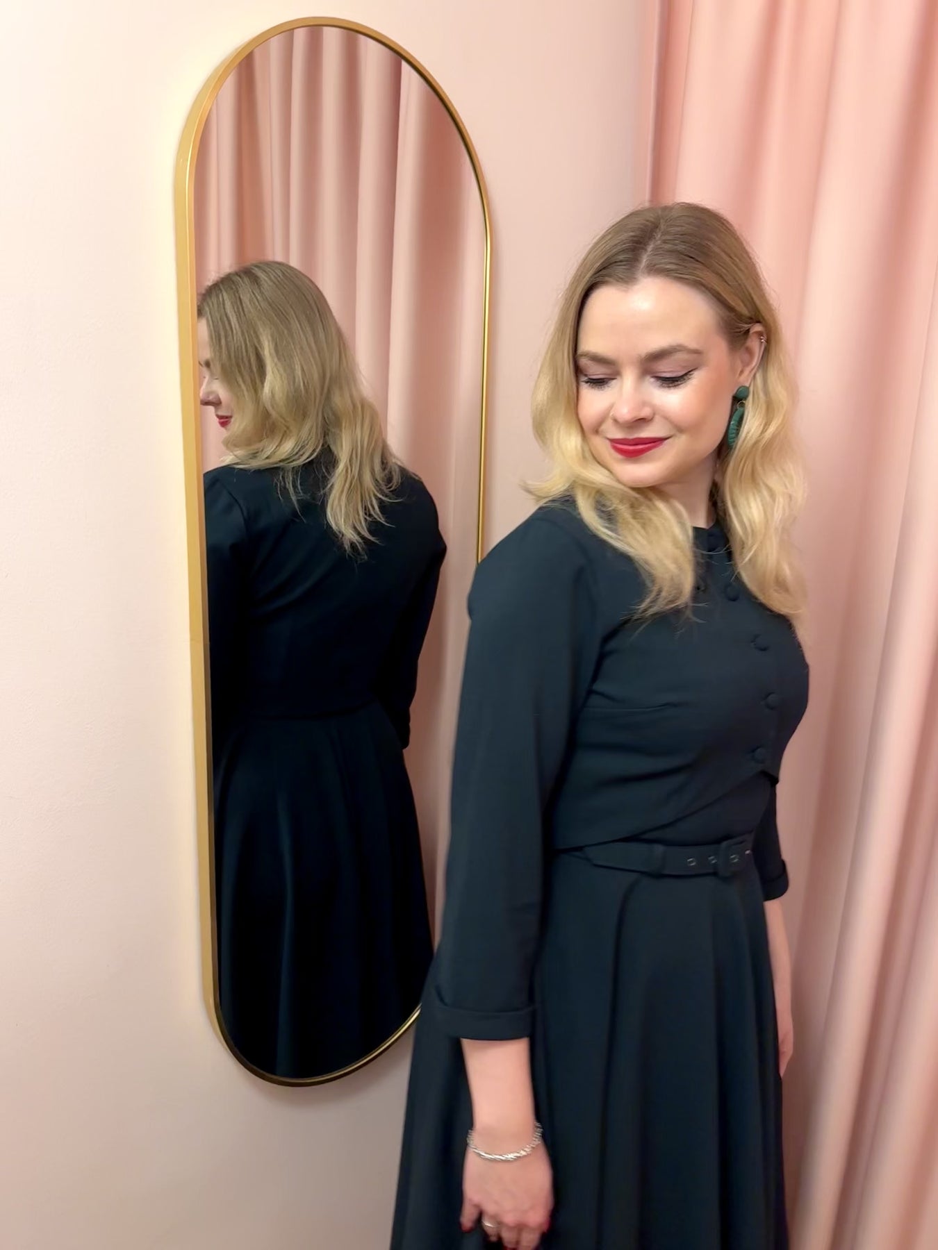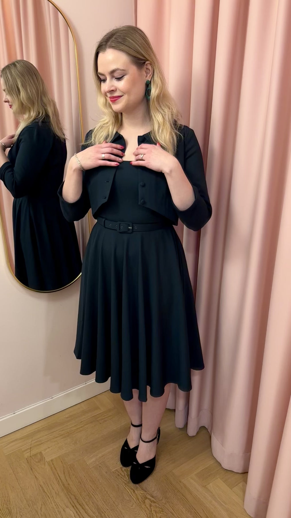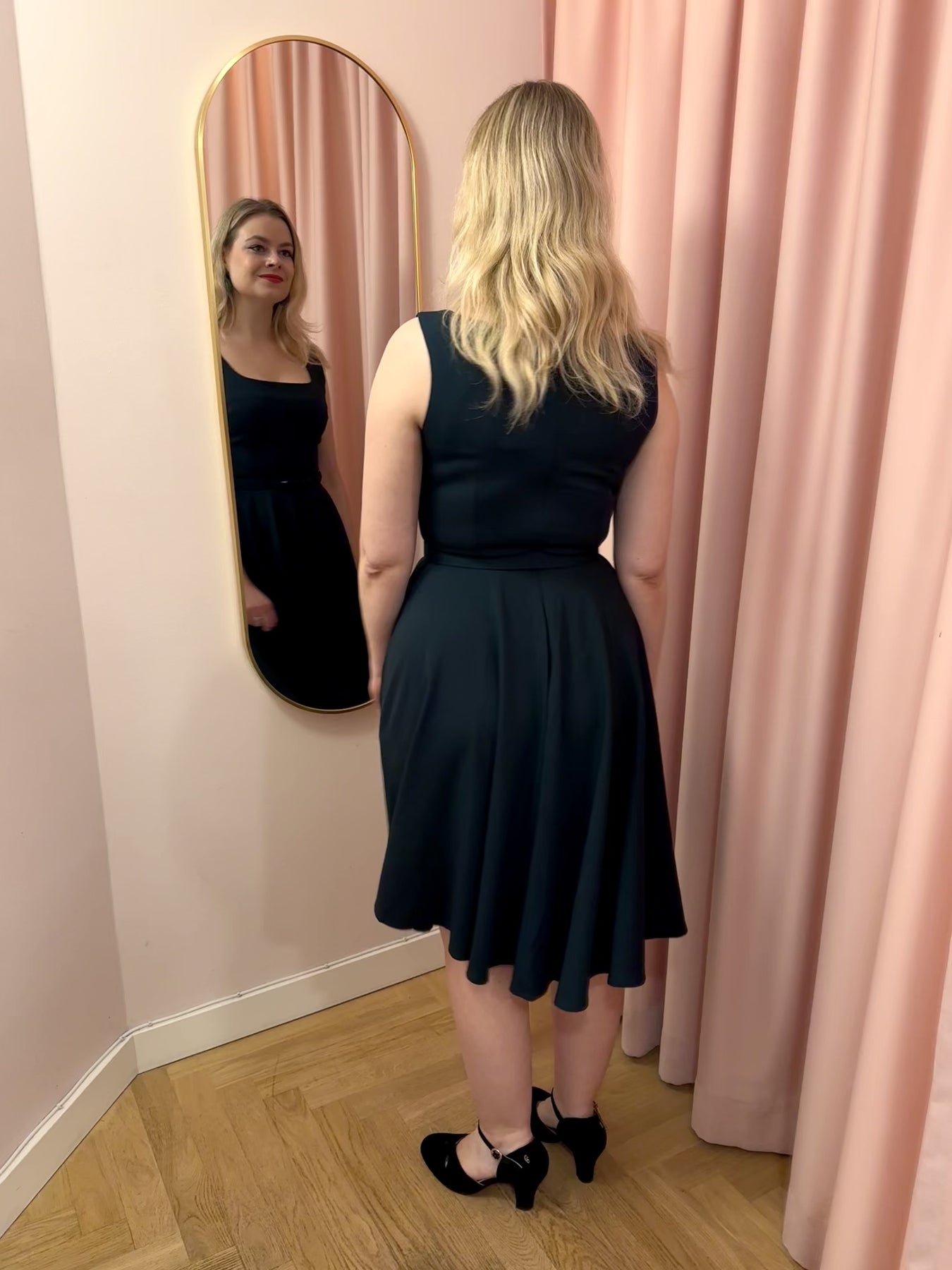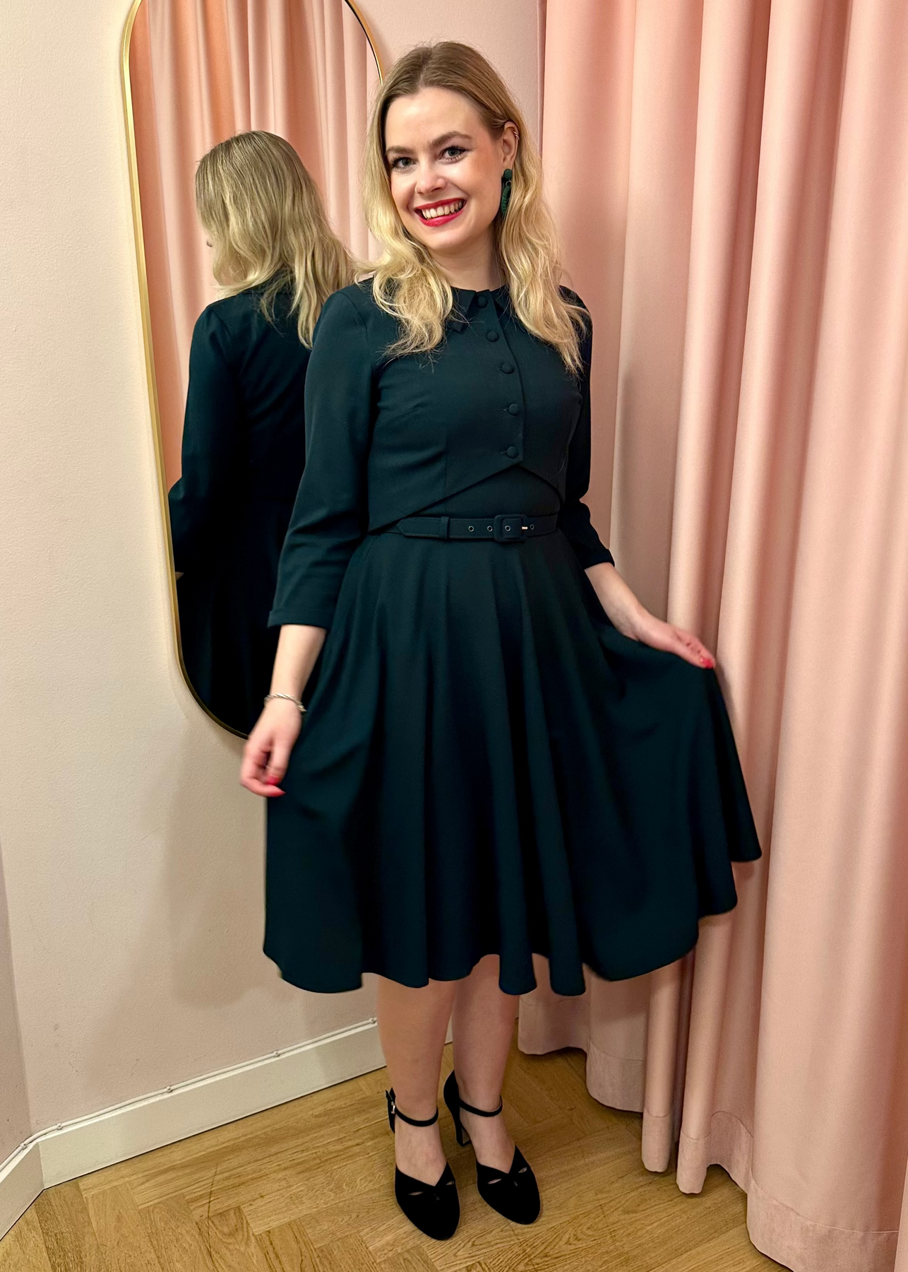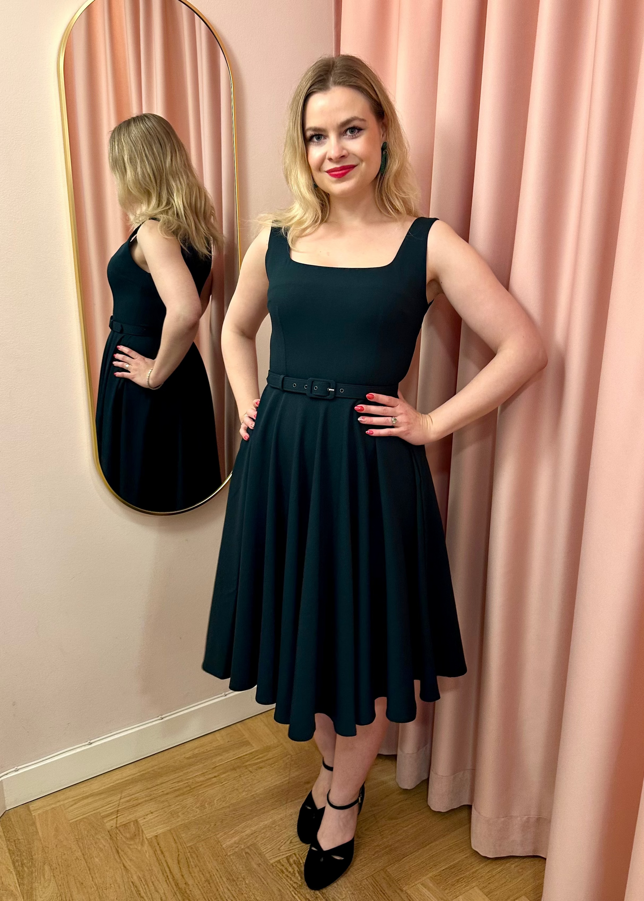 Klänning i 1950-talsstil med vacker urringning och kjol med full swing!
