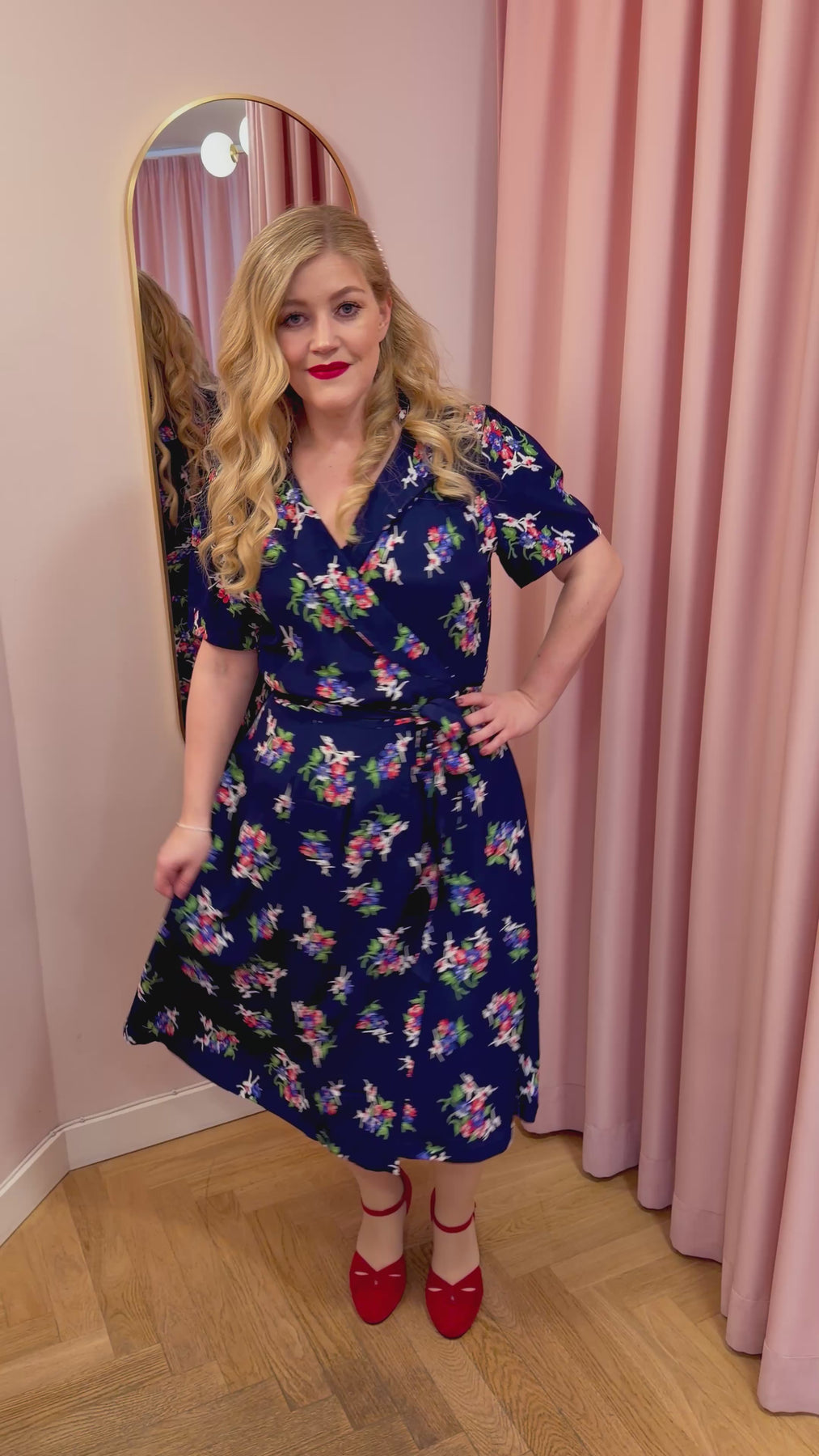 Omlottklänning - marinblå med Floral Dancer-tryck