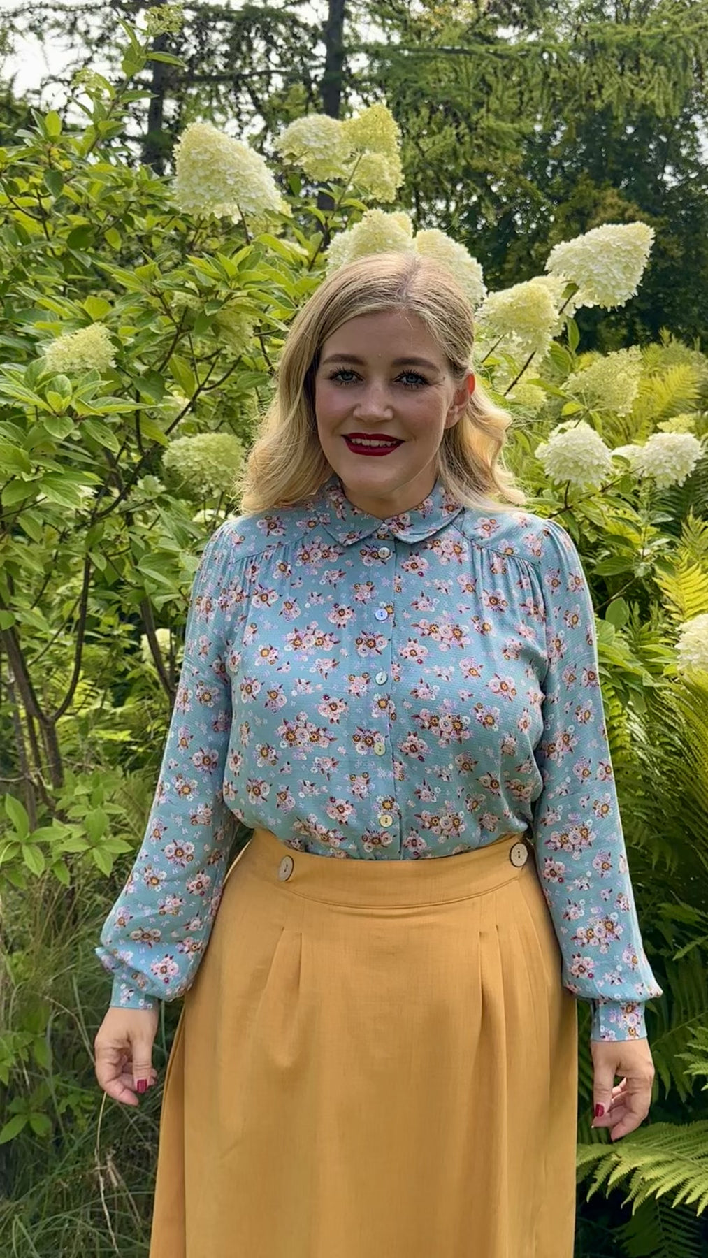 En mångsidig skjorta som kan bäras med byxor med hög midja eller en feminin kjol för en äkta vintageinspirerad look.