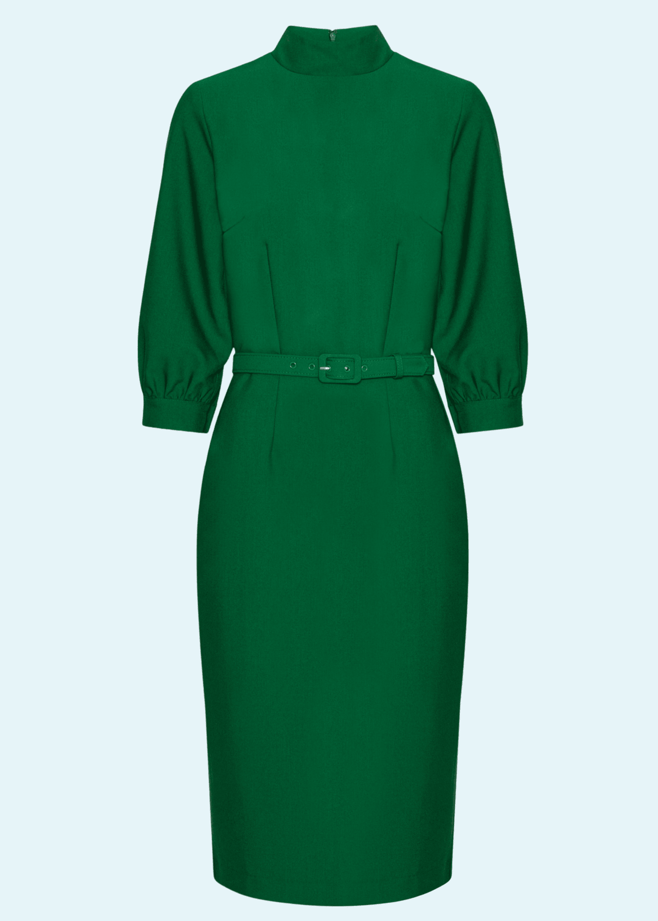 Audrey högkragad pennklänning med 3/4-ärmar – grön