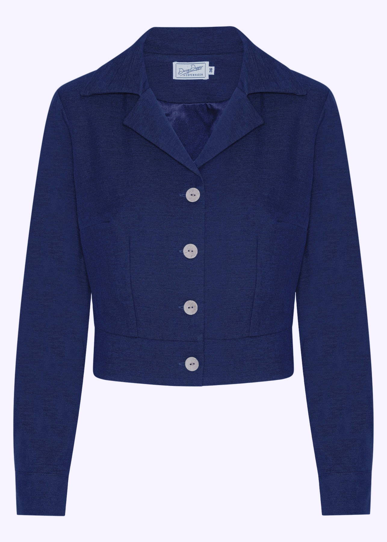 Lätt 1940-talsinspirerad jacka med långa ärmar i en härlig denim-look från vårt eget märke Daisy Dapper.