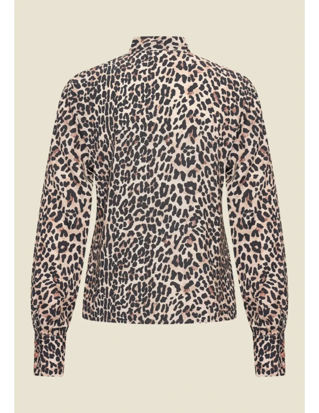 Underbar retroblus i tidlöst leopardmönster från Very Cherry – feminin och elegant med en vacker knytrosett i halsen.