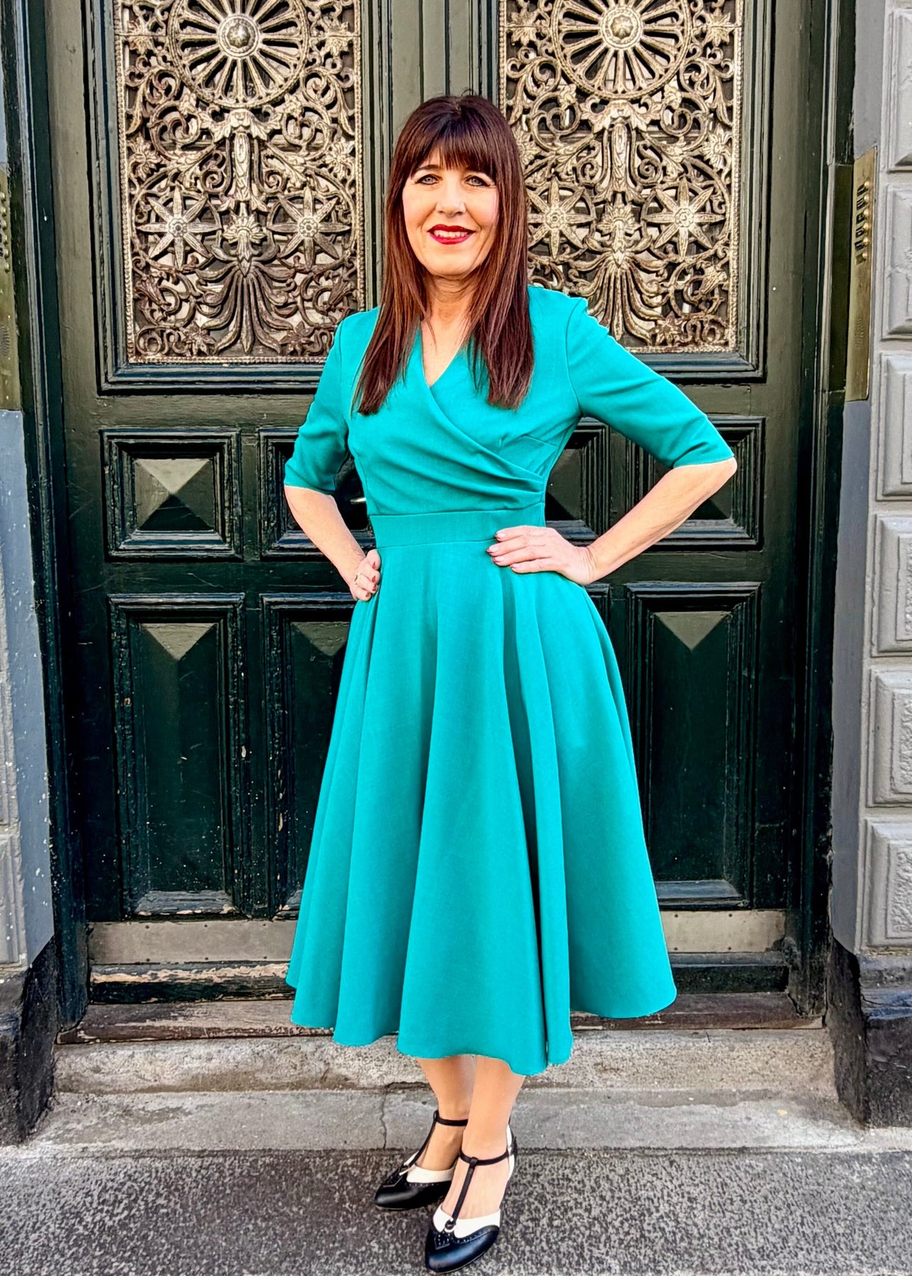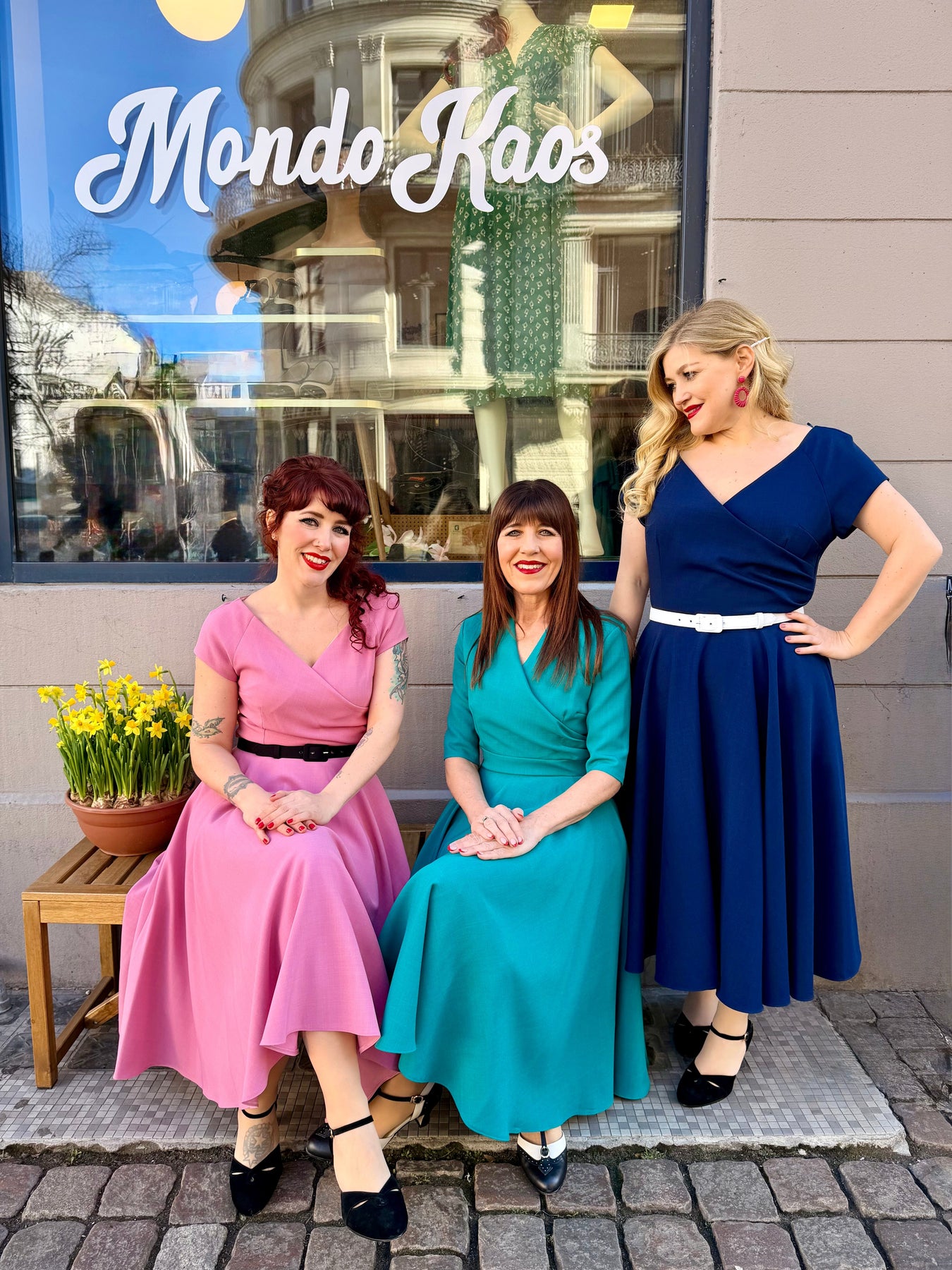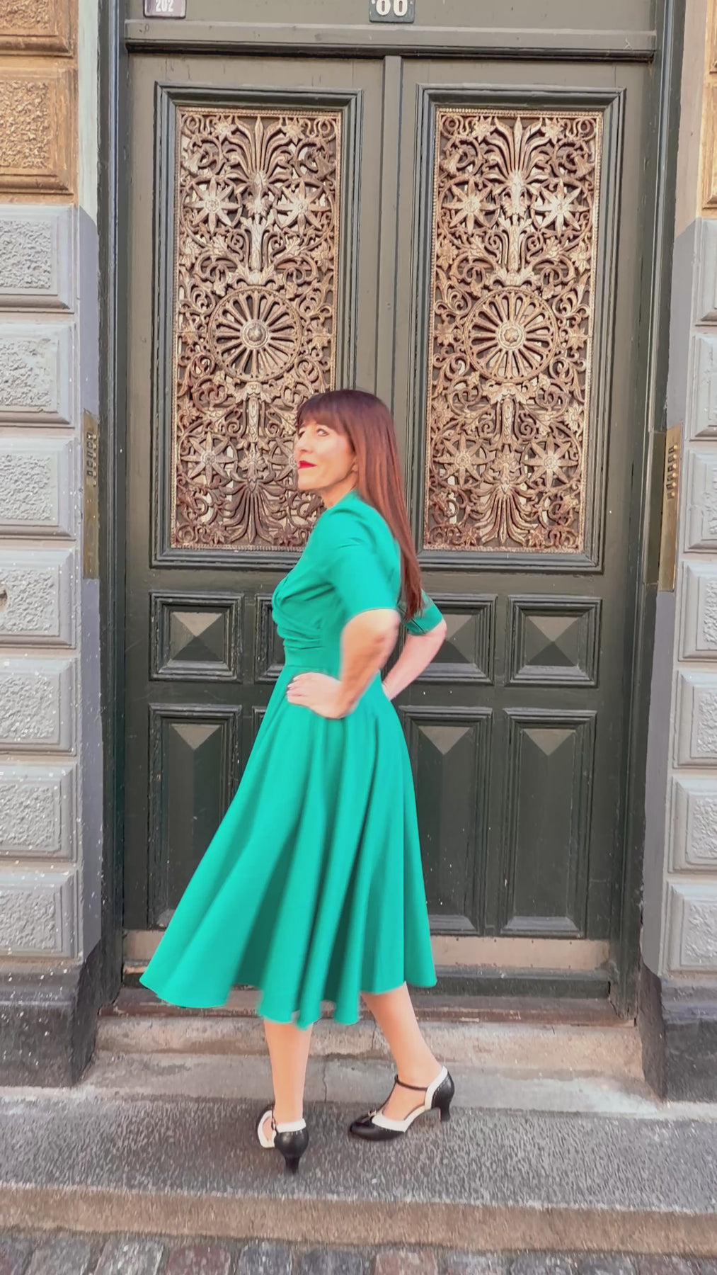 Kjolen är den fantastiska full circle eller full sun kjolen, som verkligen passar för en swingdans. Det finns även fickor och klänningen är helfodrad.