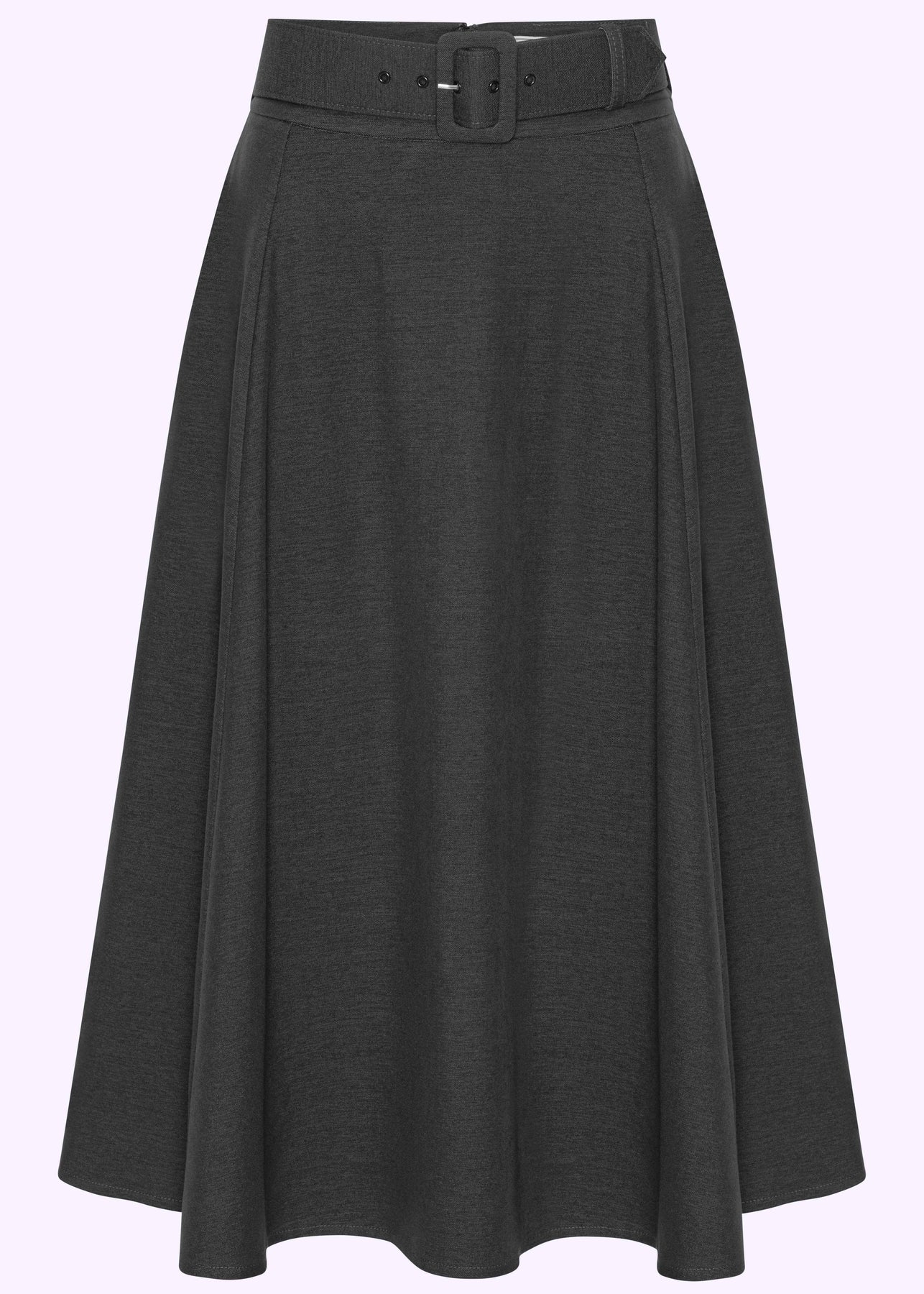 Kjolen är sydd i flera paneler för en perfekt passform och naturlig rörelse i tyget. Den har en elegant längd till mitten av vaden (ca 80 cm i storlek 36) och ger en sofistikerad, men ändå vardagsvänlig look.