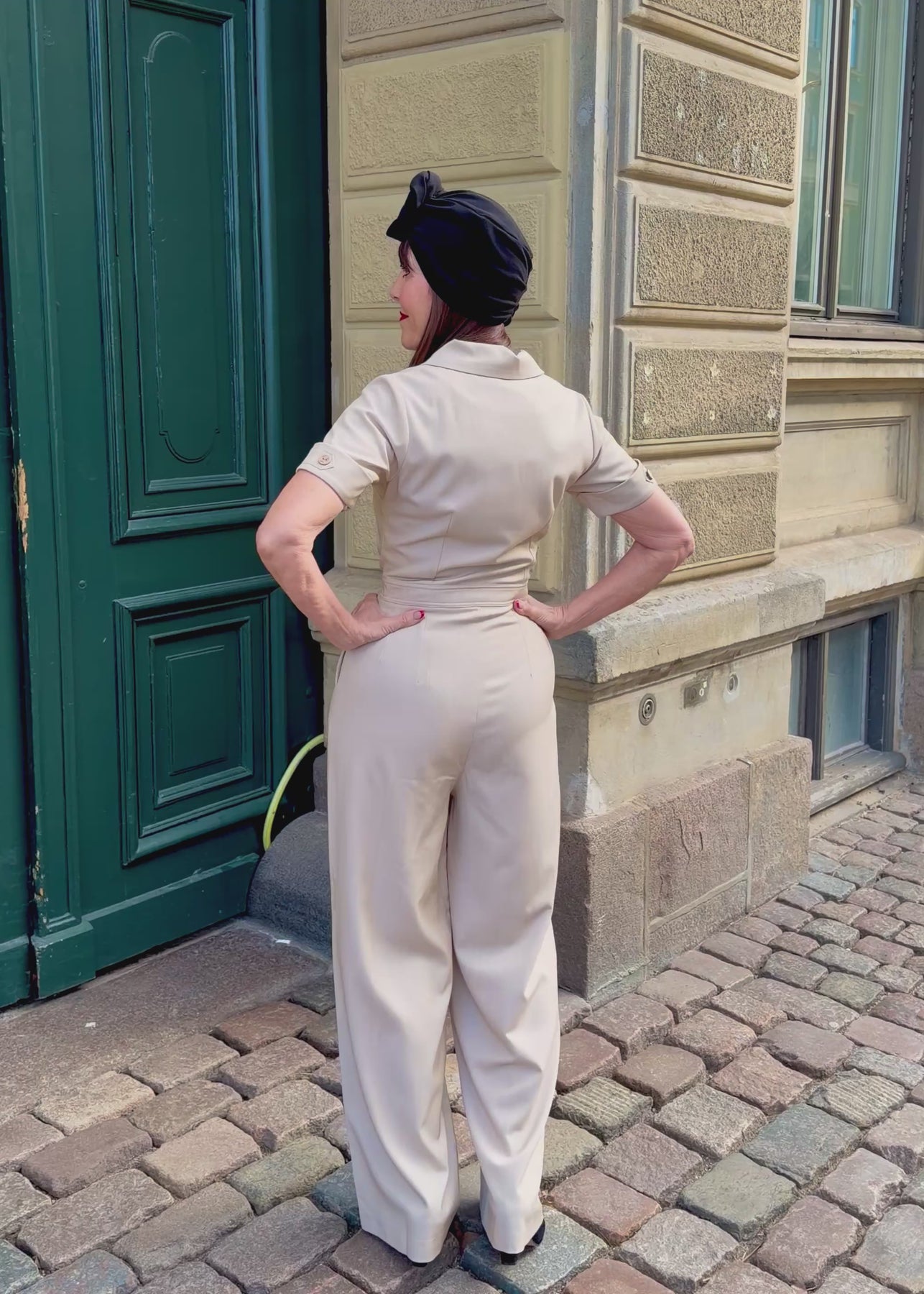 Byxbenen kan snöras in nedtill, vilket ger en snygg 1940-talslook! Det är också superpraktiskt om du till exempel cyklar.