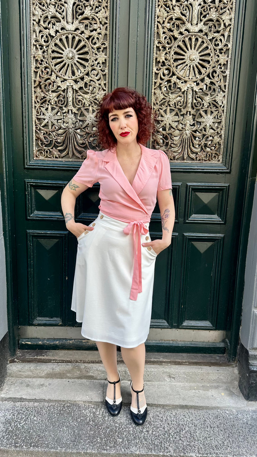 Härlig A-linjeformad kjol med knappar framtill i off-white från Daisy Dapper.