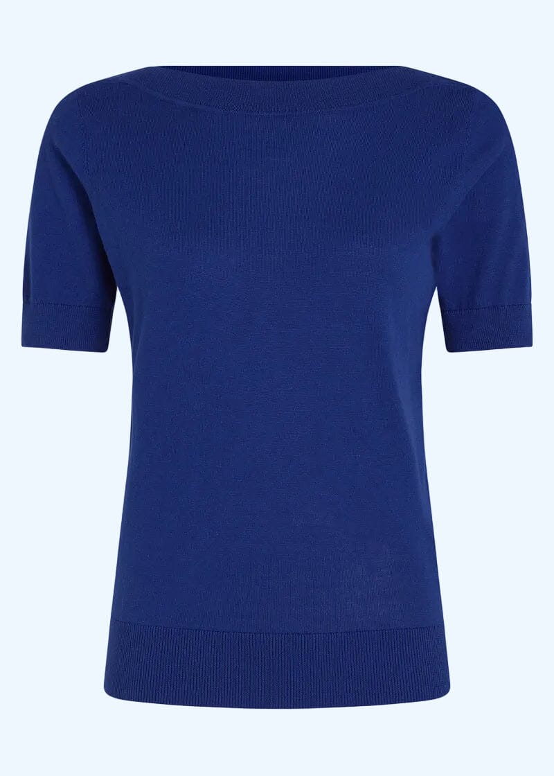 Kortärmad stickad topp i blått med båtringning från King Louie