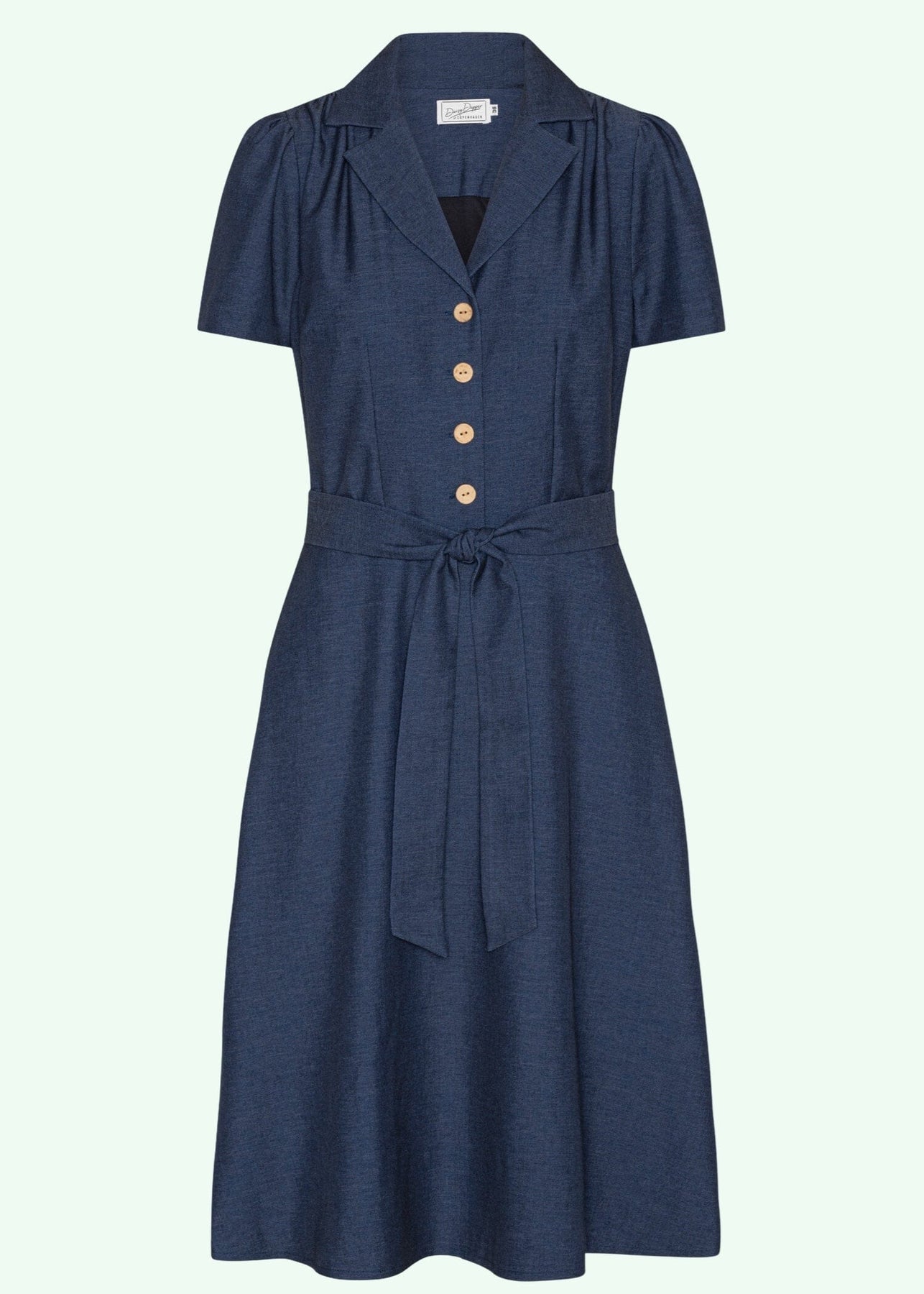 Den enkla Betty-klänningen har det perfekta skjortklänningssnittet, med en elegant kavajkrage och V-ringning som ramar in halsen och ansiktet vackert.