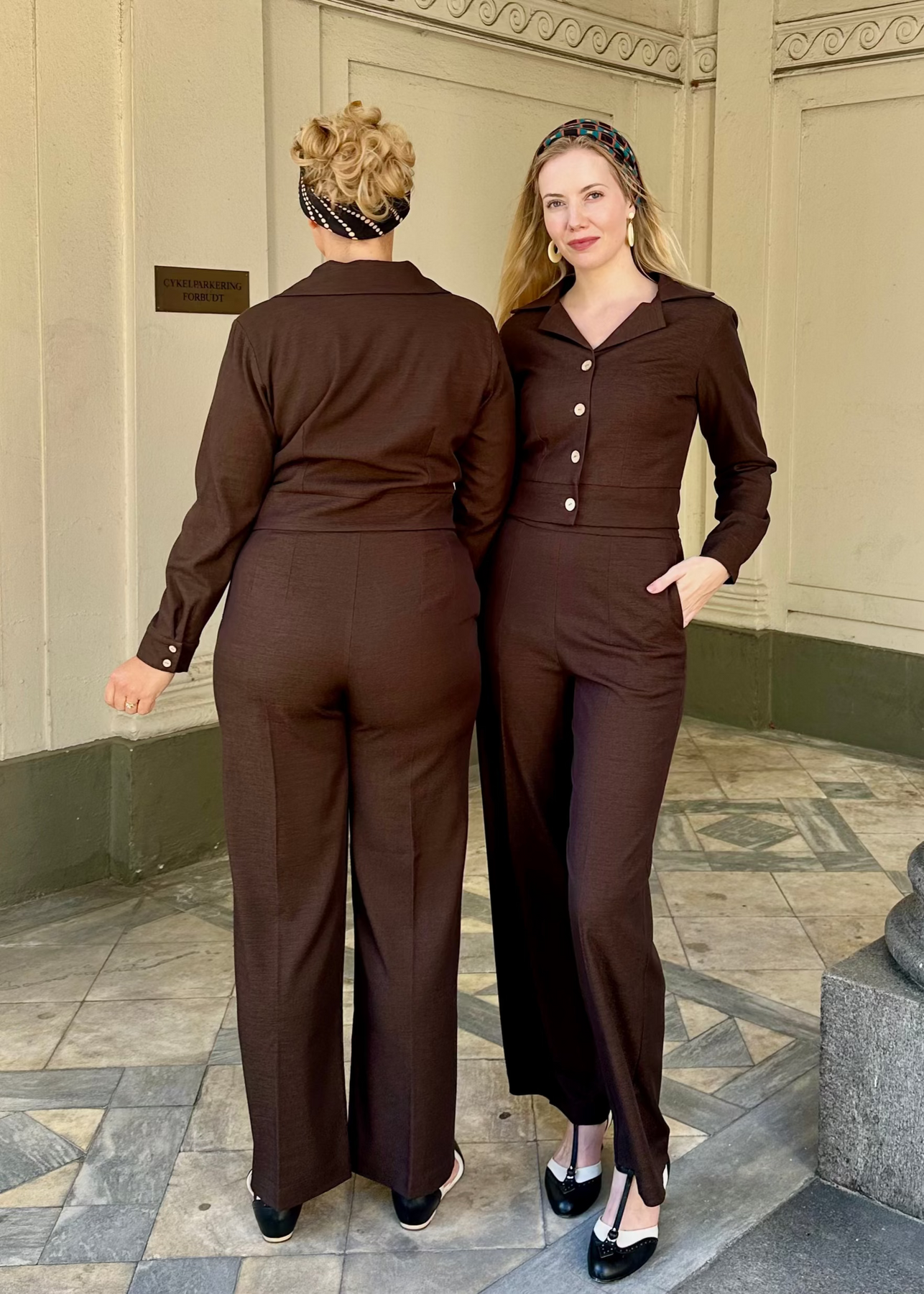 Vintageinspirerade byxor med hög midja i brun från Daisy Dapper.