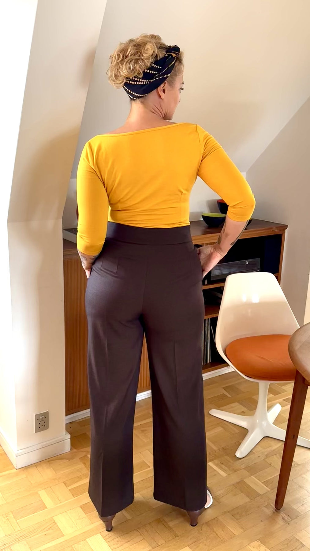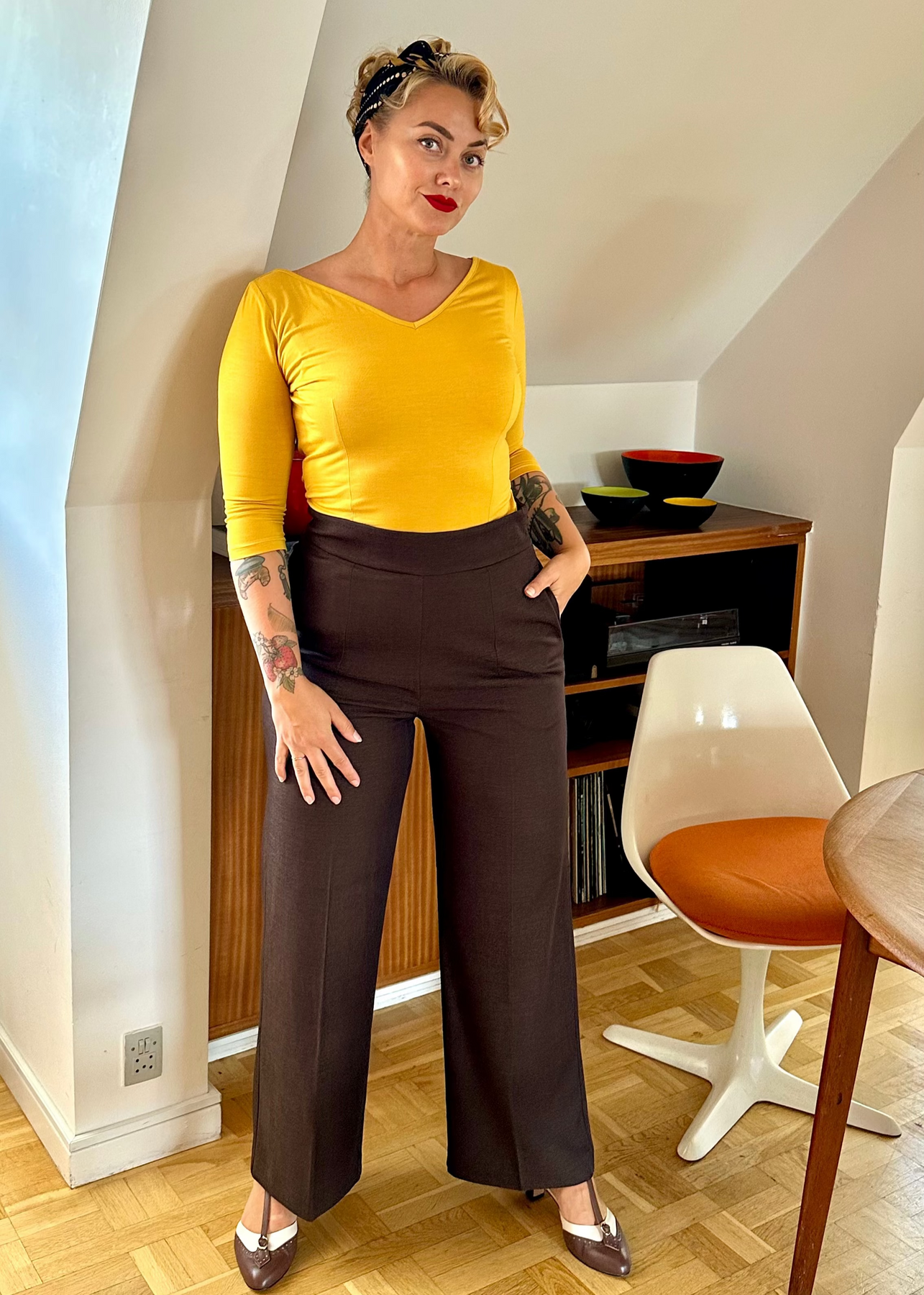 Vackra och smickrande byxor i vintagestil i lätt och skön viskosstretch!