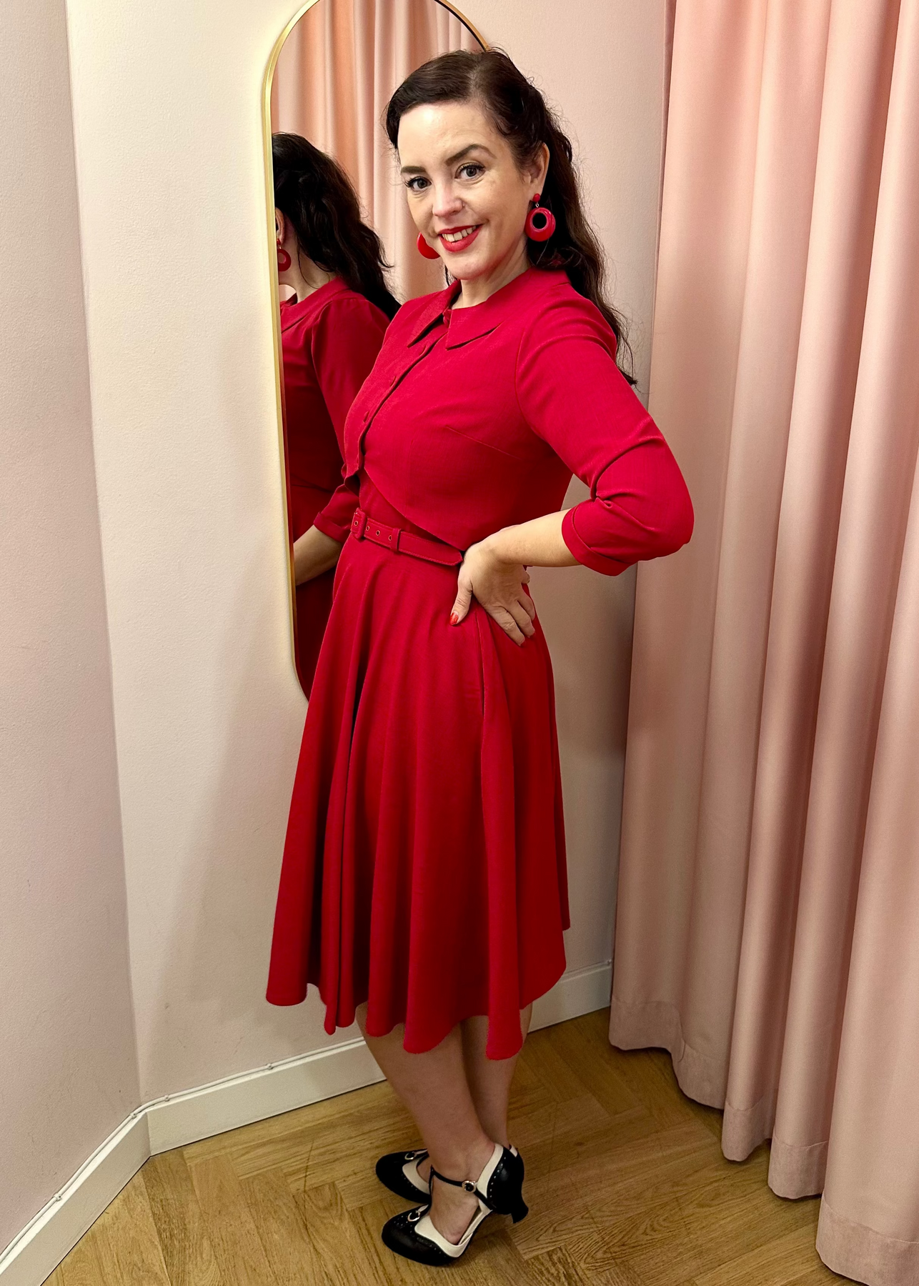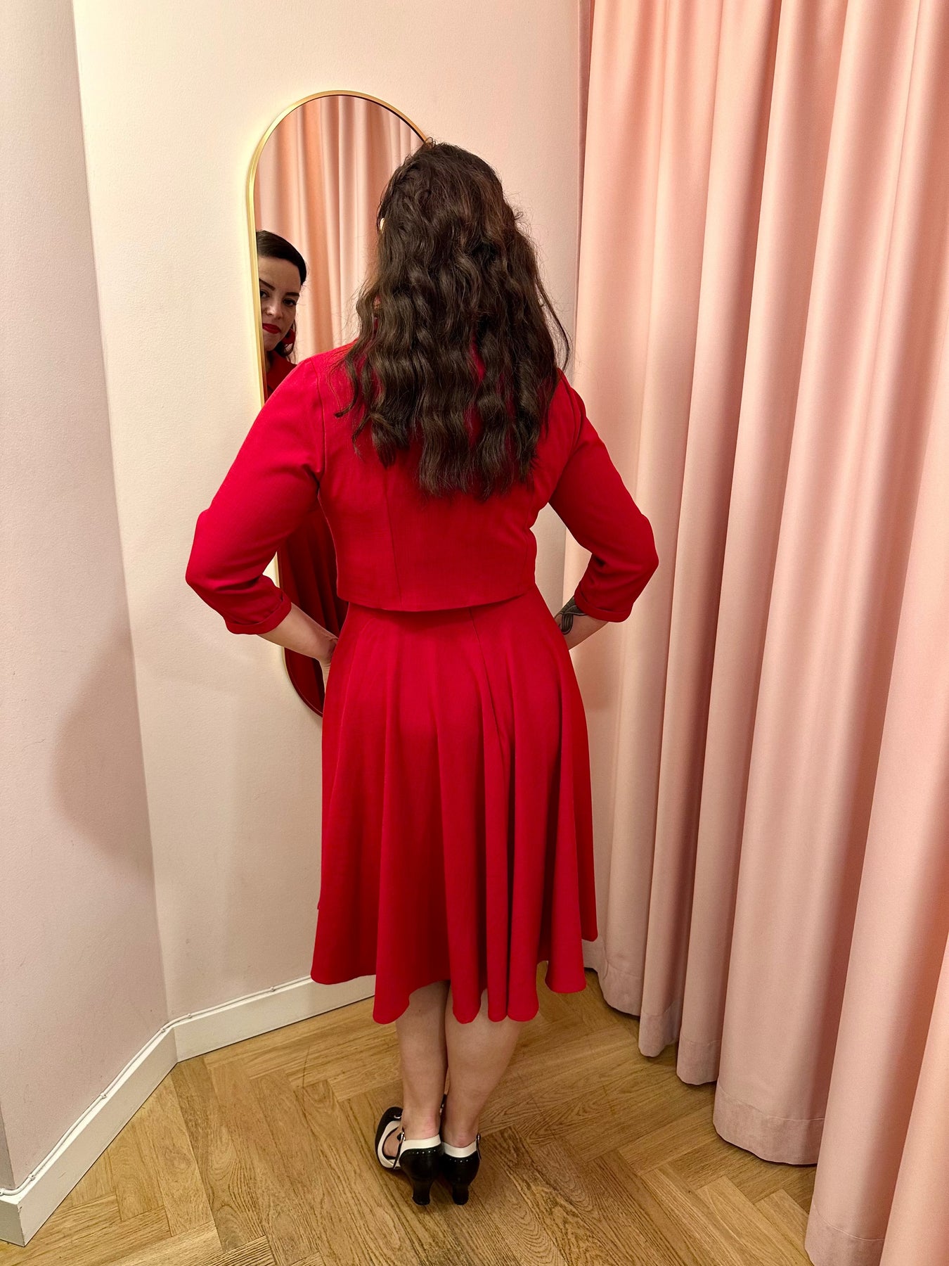 Lätt bolerokavaj i 1950-talsstil i röd linen från Daisy Dapper.