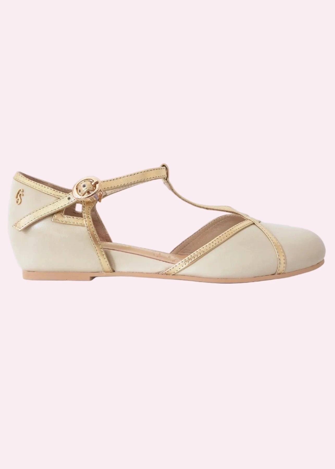 En vacker och elegant 1930-talsinspirerad sko med T-rem och fina utskärningar. Perfekt för vintage-looken eller bara en festlig vardagslook.