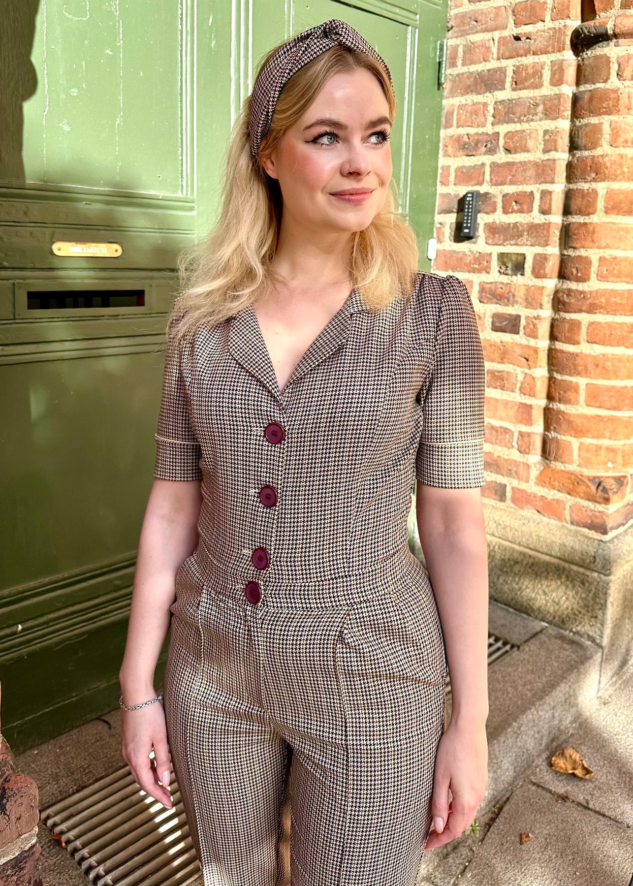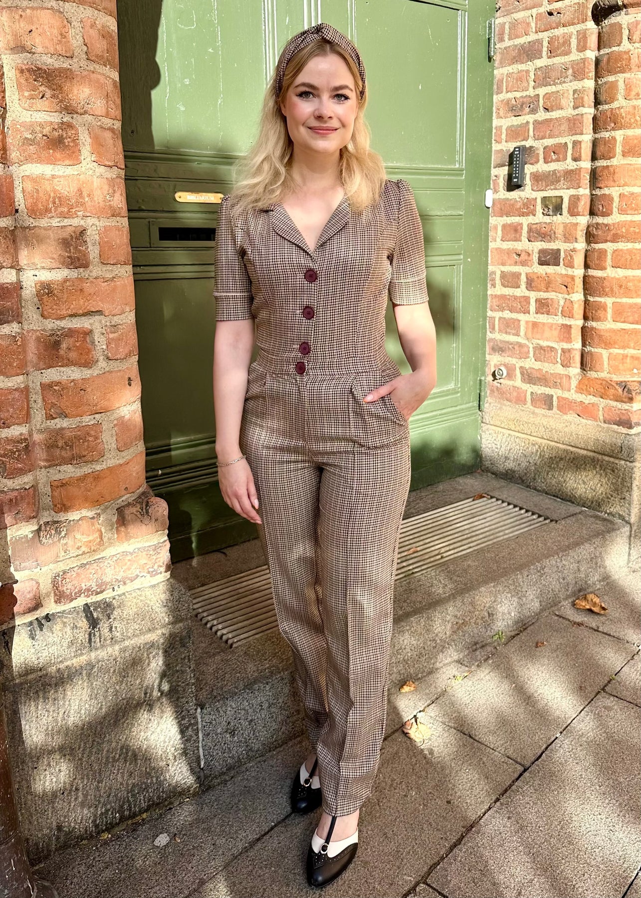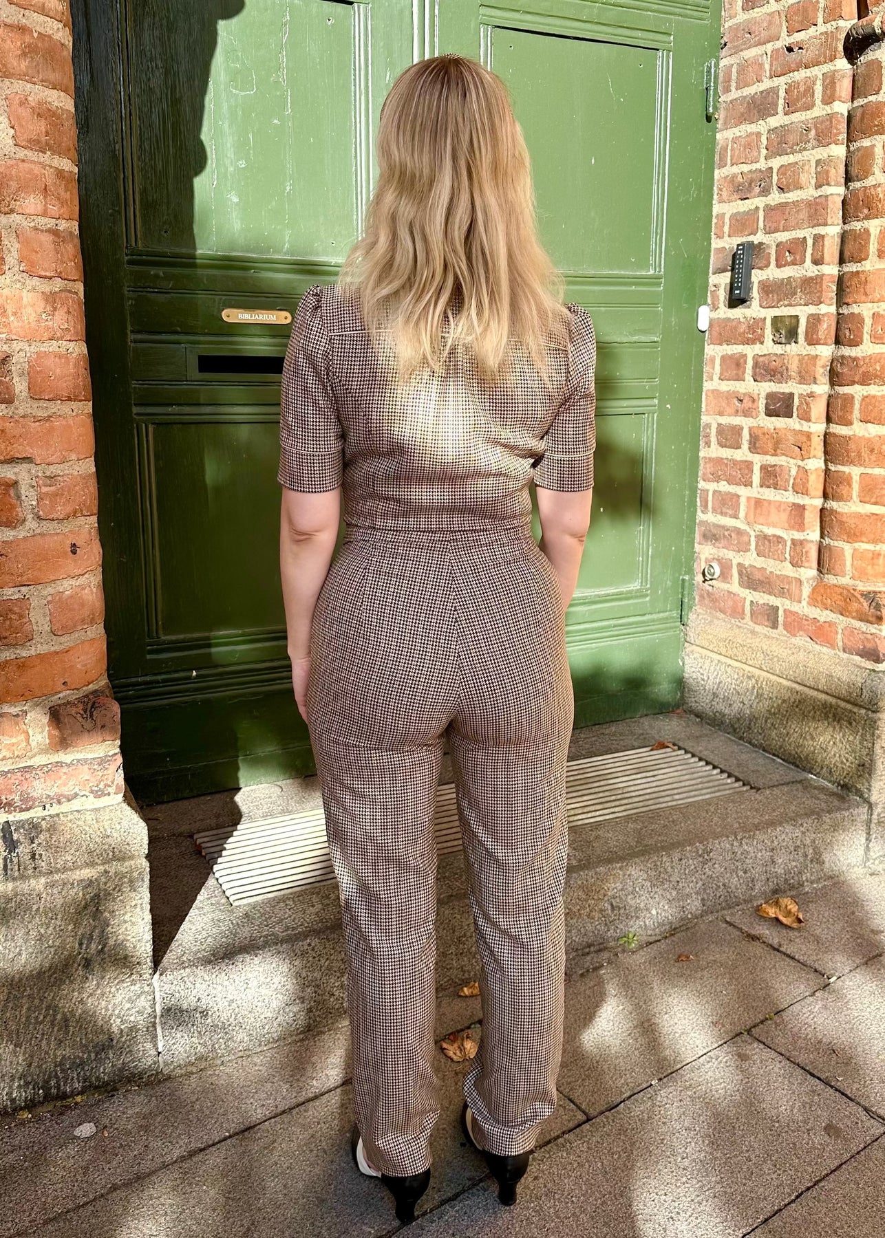 Den underbara och bästsäljande byxdressen från Very Cherry är tillbaka i en ny, limiterad version med klassiskt brunt rutmönster.