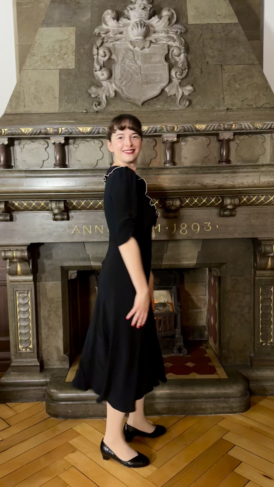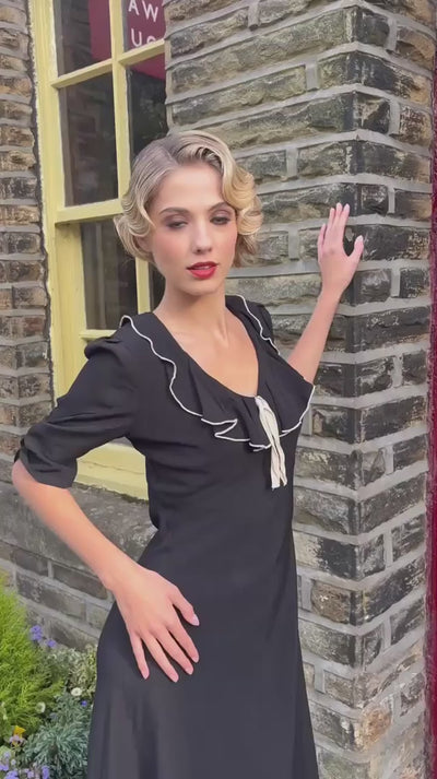 1930-talsinspirerad klänning i svart med snedställd skärning från The House of Foxy.