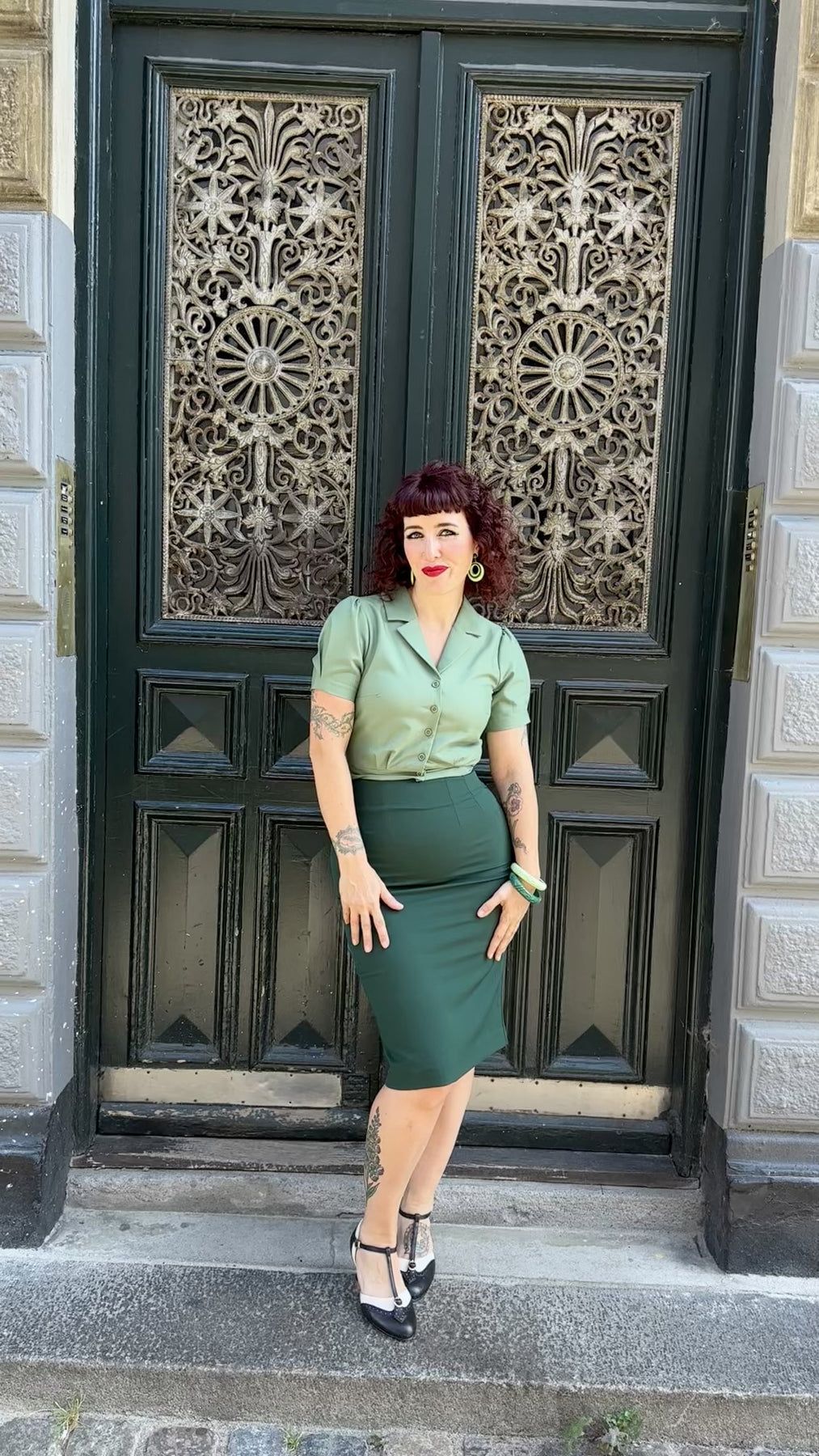 Kortärmad skjorta i 1940-talsstil i jadegrönt från In-House märket Daisy Dapper.