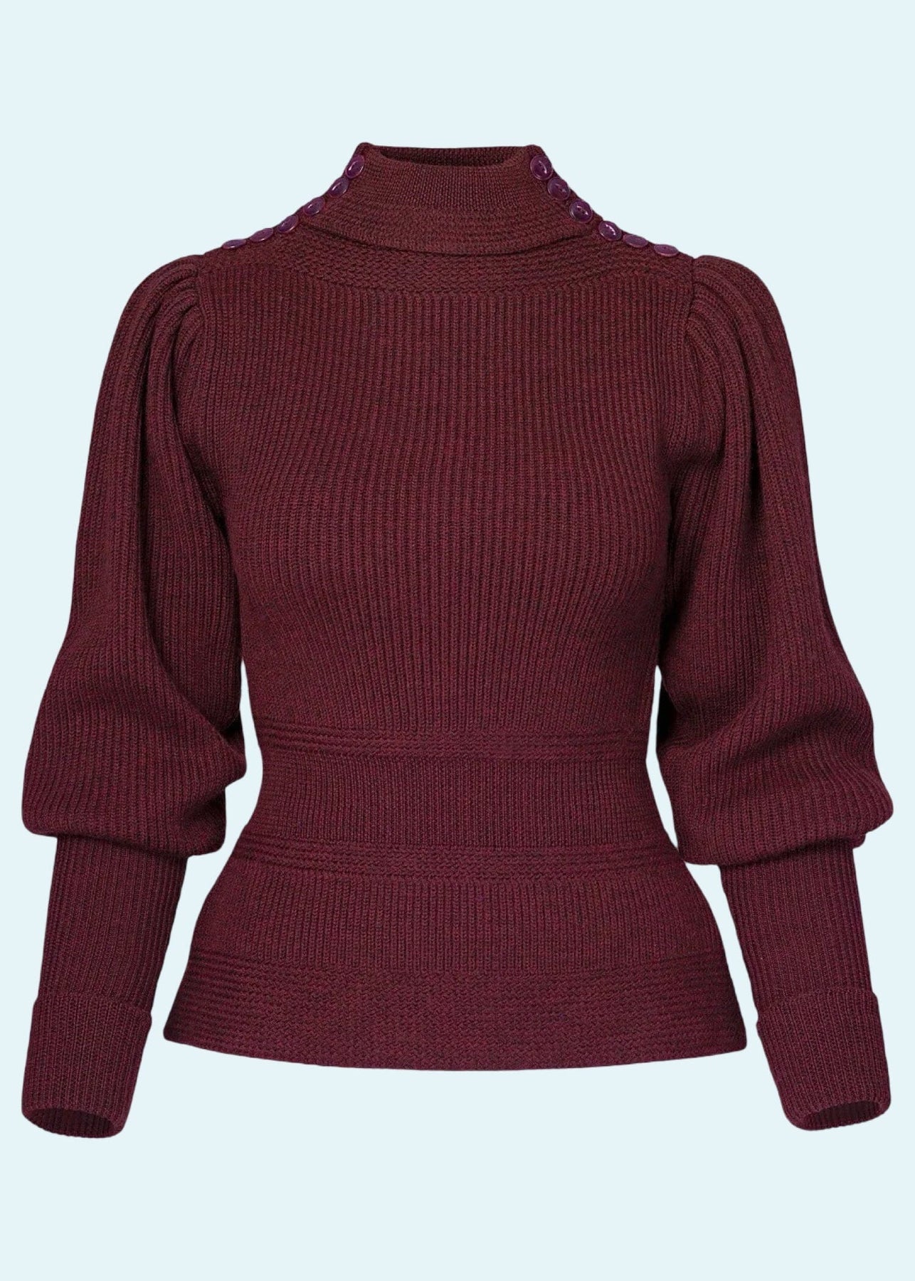 Elegant tröja med voluminösa ärmar i maroon merinoull från Emmy Design.
