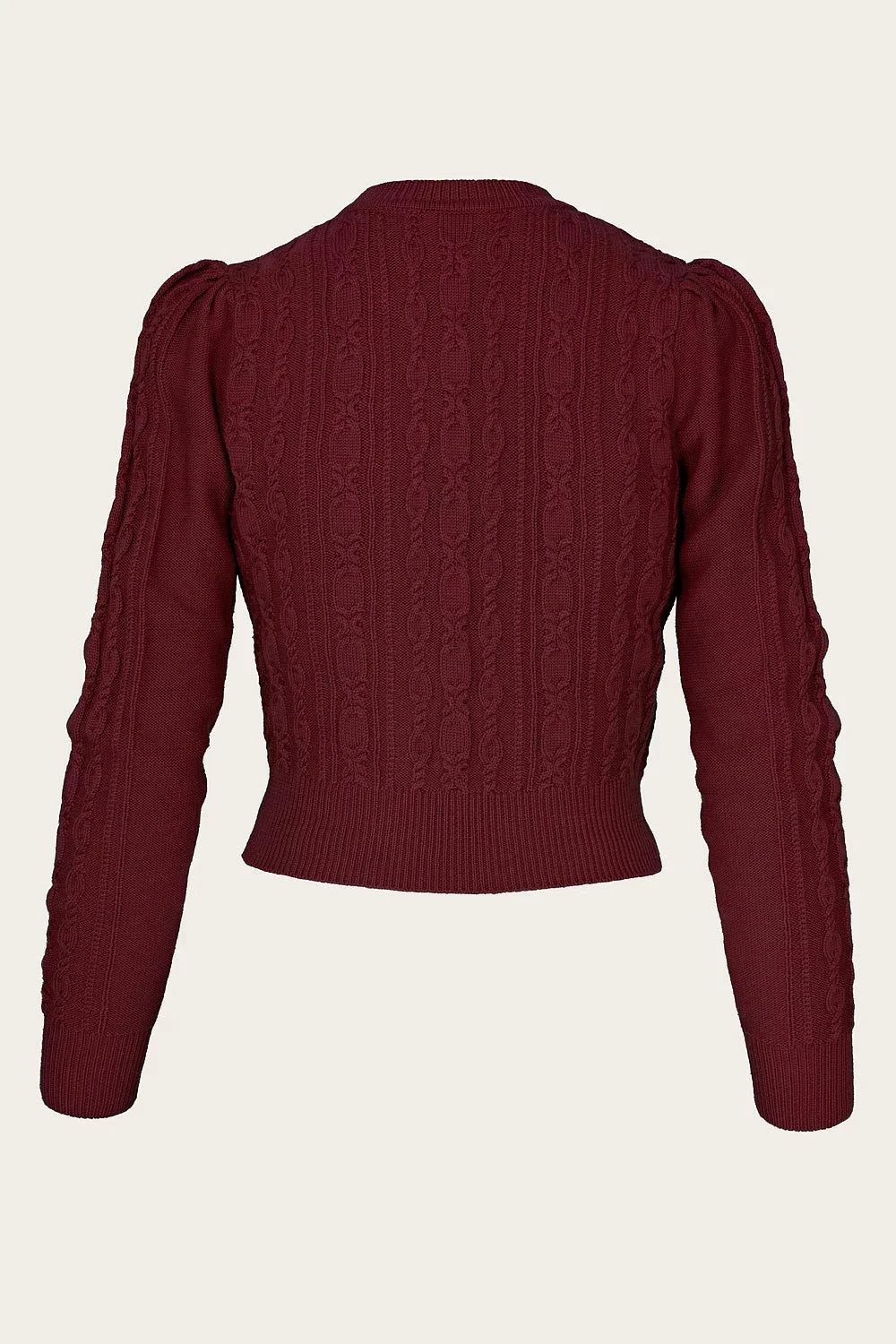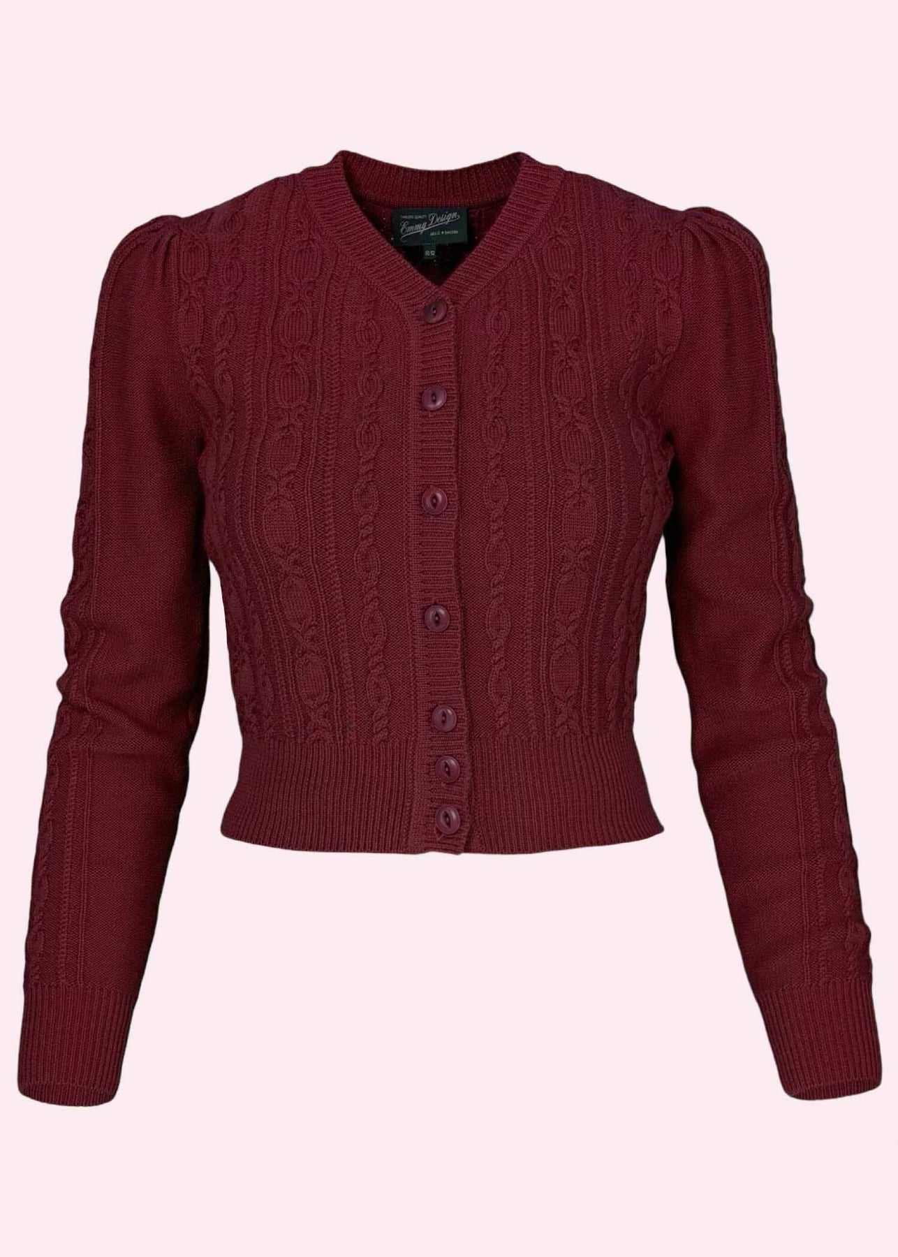 Ice Skater-cardiganen är en favorit som ingen bör vara utan. Flatterande flätstickning, puff vid axlarna och hög halsringning ger den rätta vintagekänslan. Den avslutas i midjan och sitter nära kroppen, vilket gör den perfekt till alla dina feminina retro- och vintageinspirerade outfits med fokus på midja och timglasfigur!