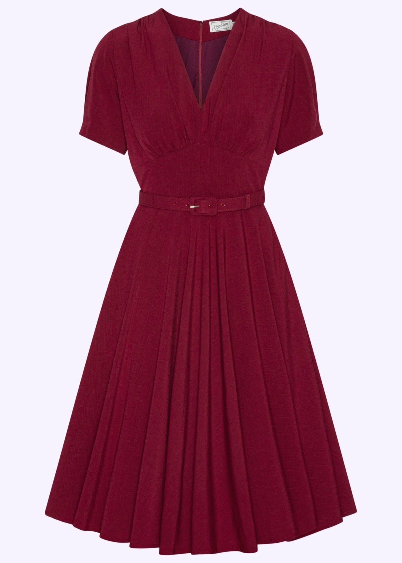 Från den vida midjan faller Marilyn-klänningen ner i en kjol med full swing. Snittet framhäver den feminina silhuetten där midjan är definierad.