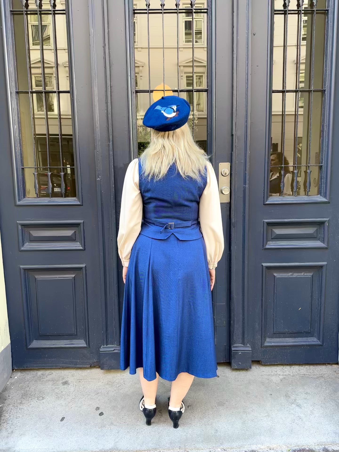 Klassisk 1940-talsinspirerad väst i mörkblå denimlook