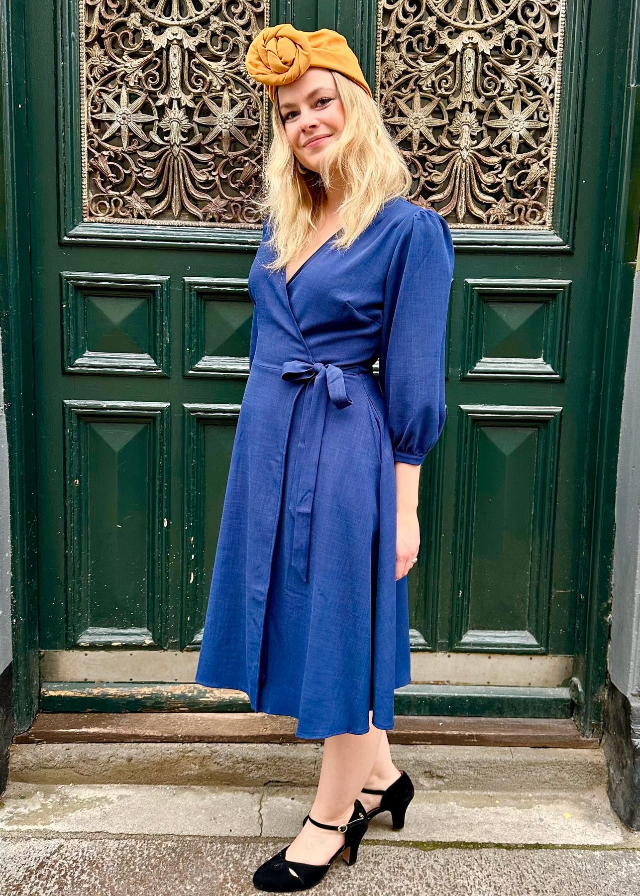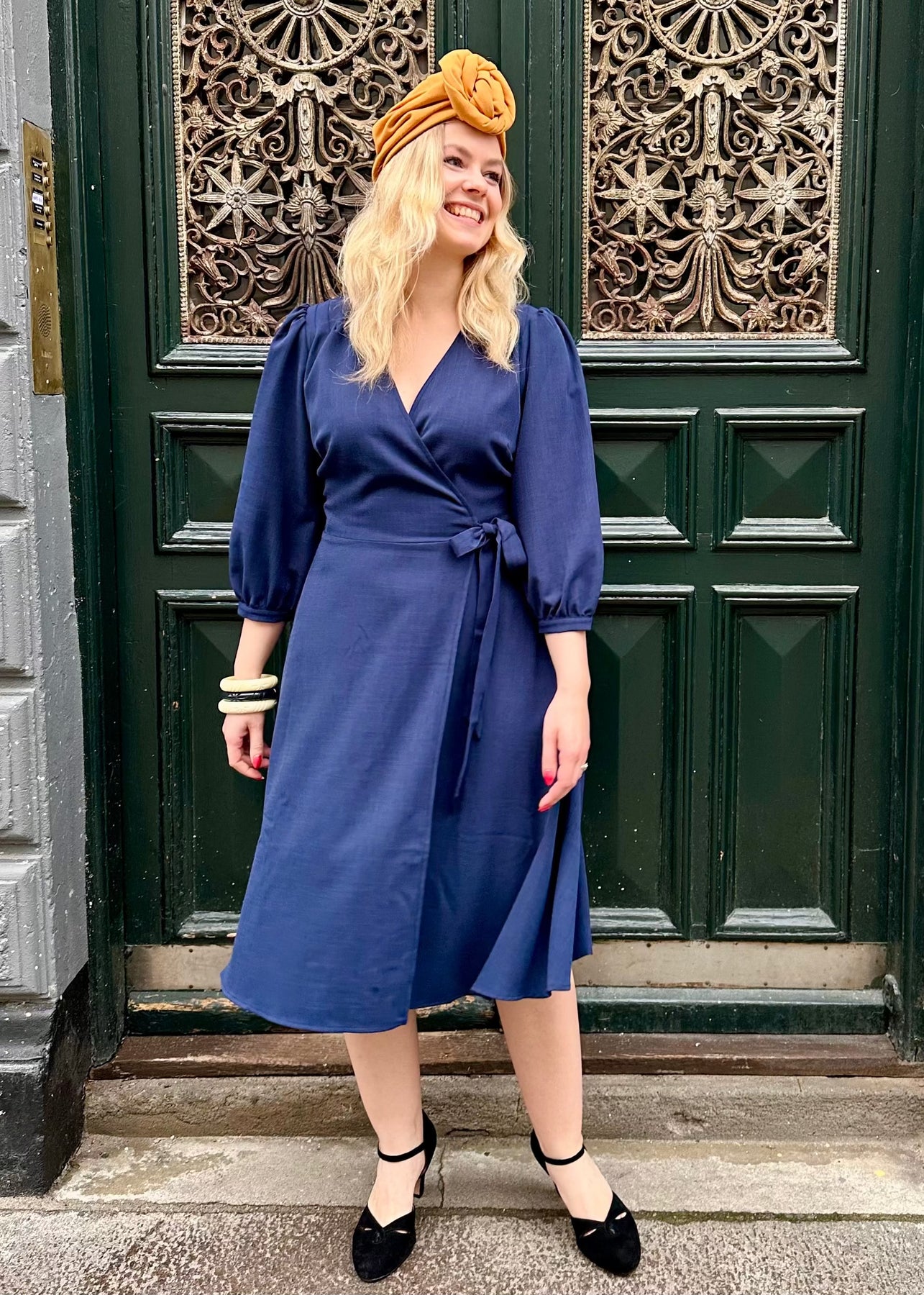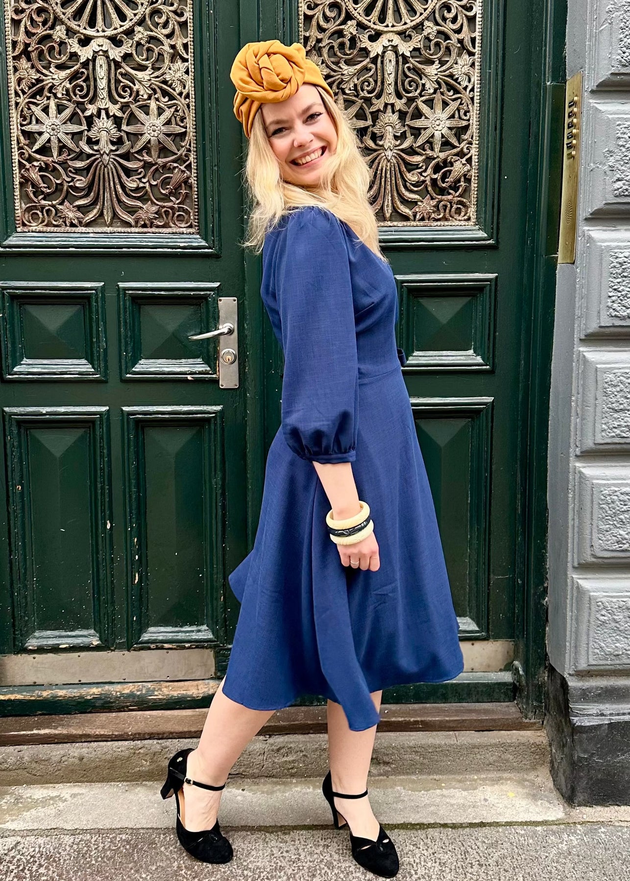 Jane slåom kjole med 3/4 ærmer - navy blå slåom kjole Daisy Dapper