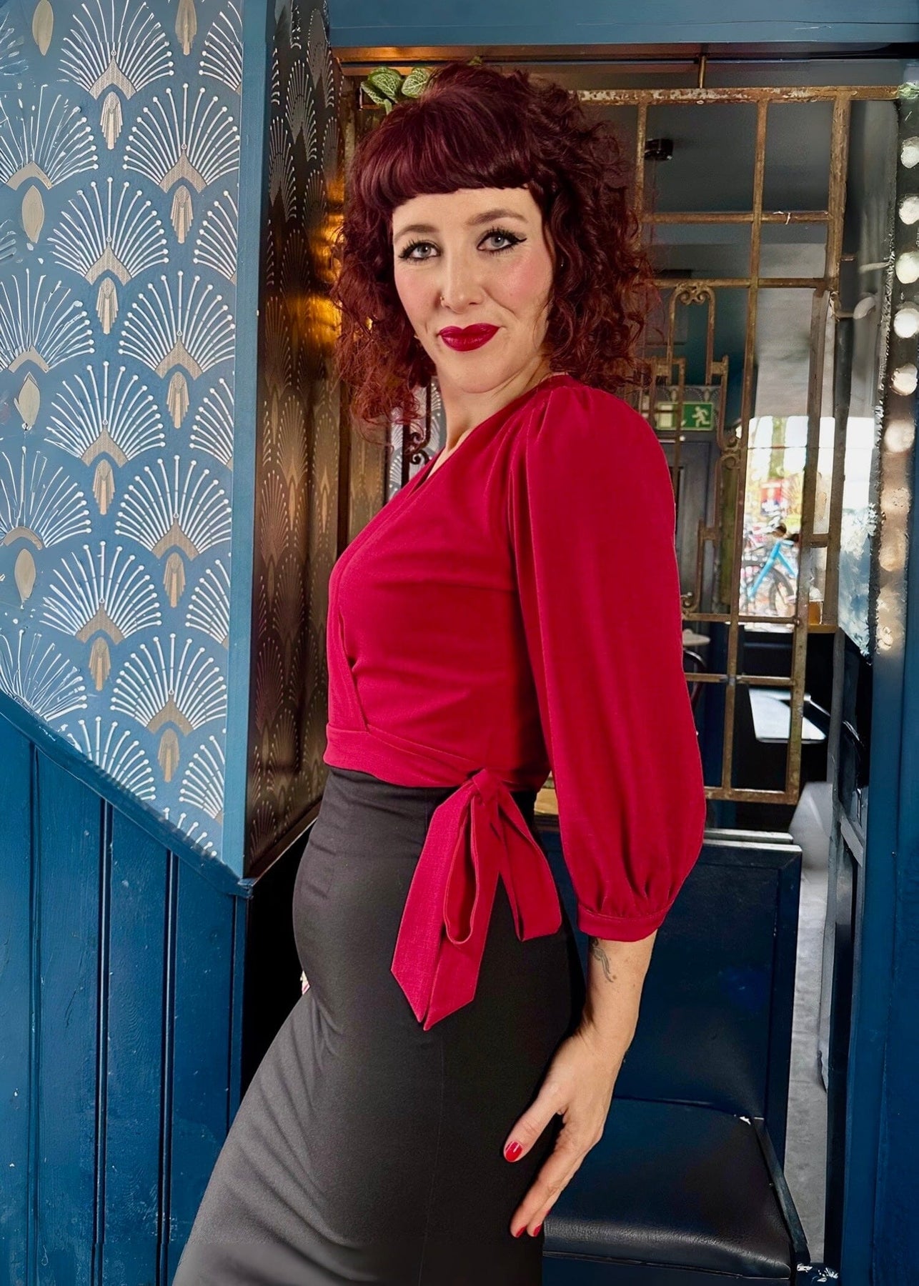 Feminin Röd omlottblus i klassisk vintage stil från Daisy Dapper