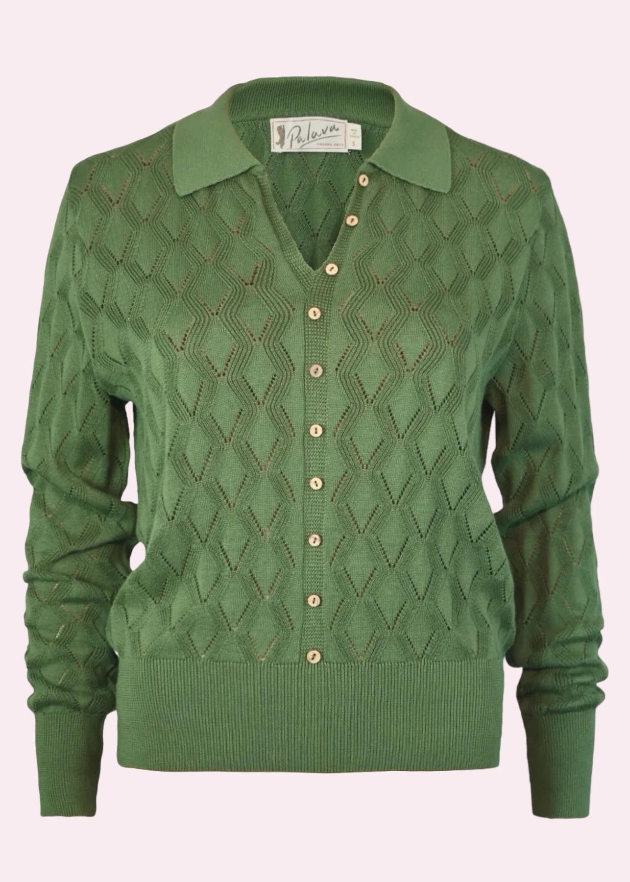 Rosie stickad blus är inspirerad av vintage-stickning med vackert vävt mönster, faux front och kokosknappar. En tidlös klassiker som kombinerar feminina detaljer med enkel elegans.